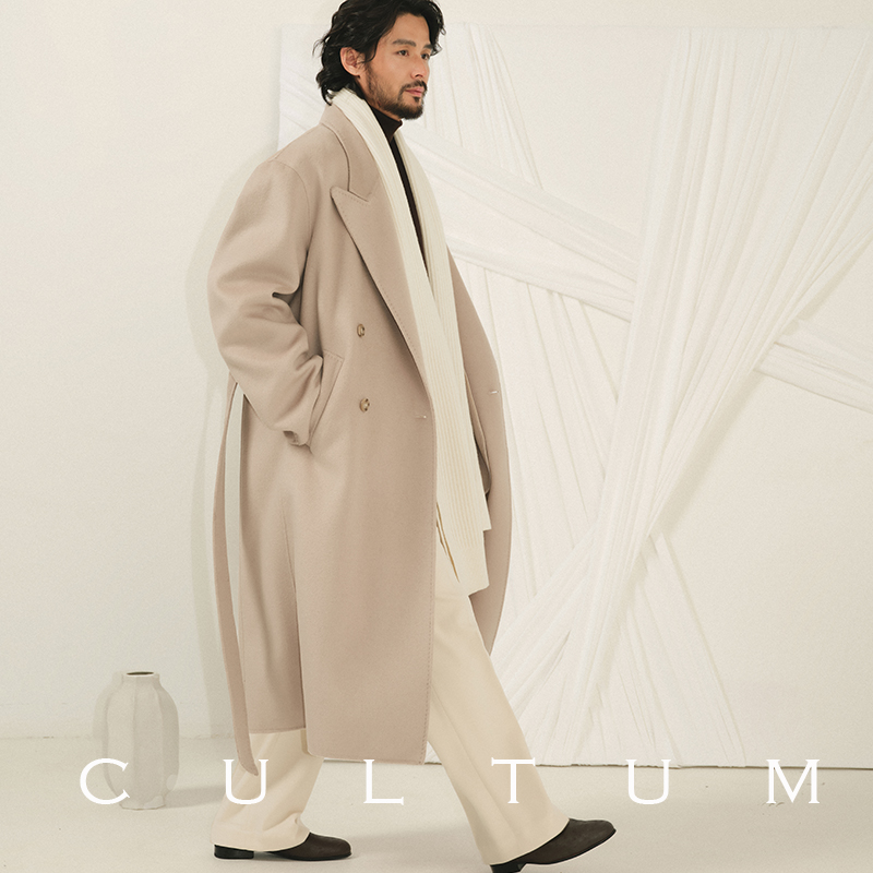 [Двусторонняя шерсть из чистой шерсти, одинаковый стиль для мужчин и женщин] Утолщенное пальто CULTUM с тяжелым двубортным воротником с лацканами весом 850 г.