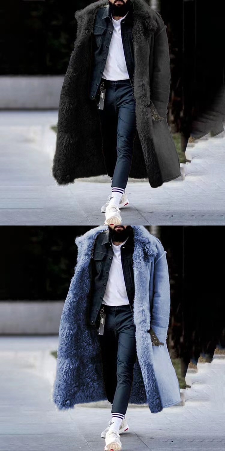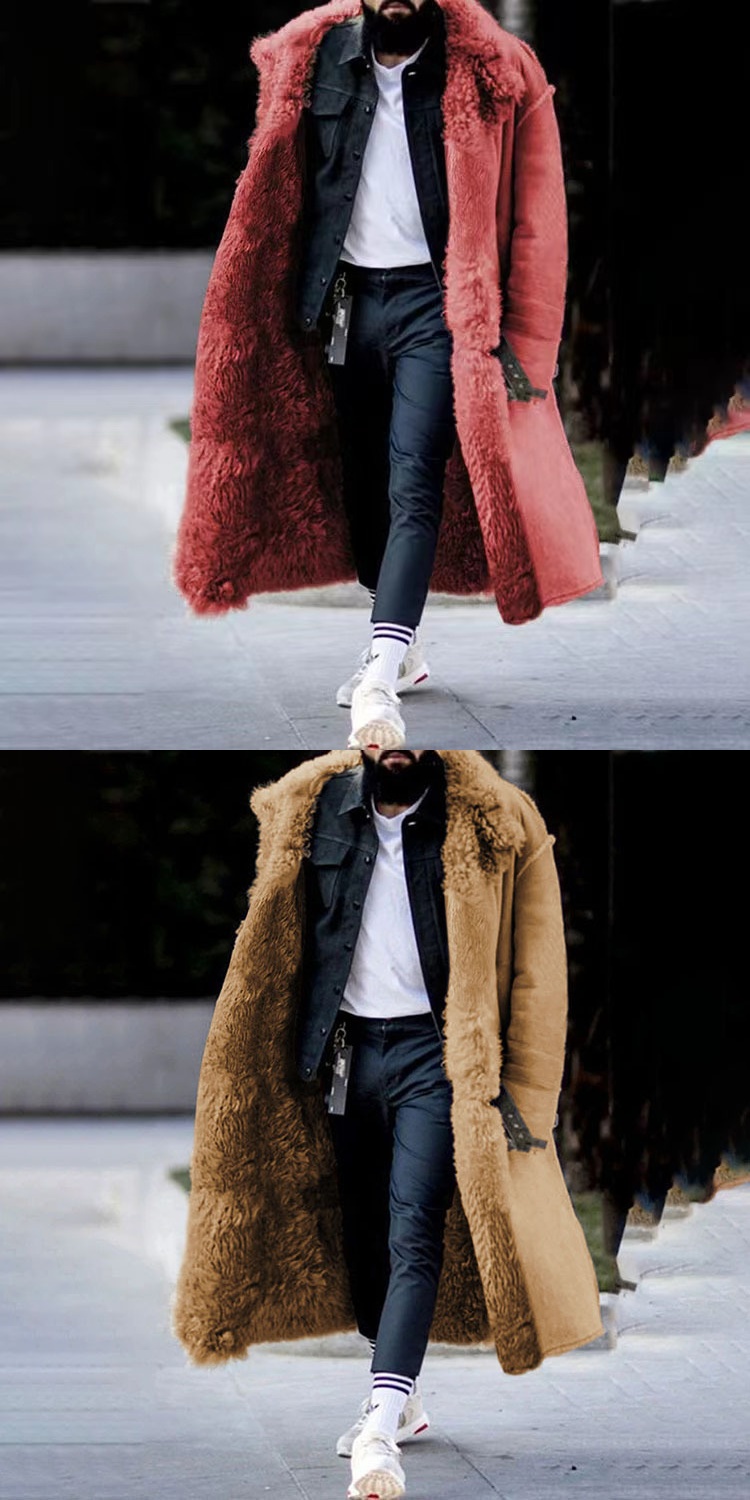 Европейские и американские зимние плюшевые куртки теплые мужские плюшевые топ, длинное пальто зима