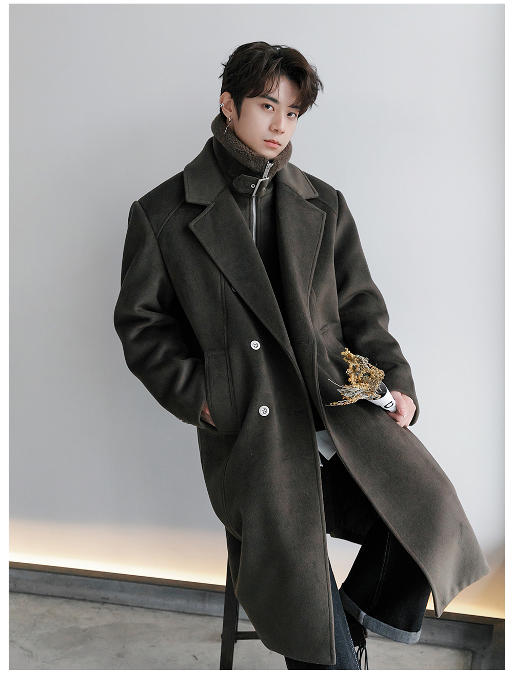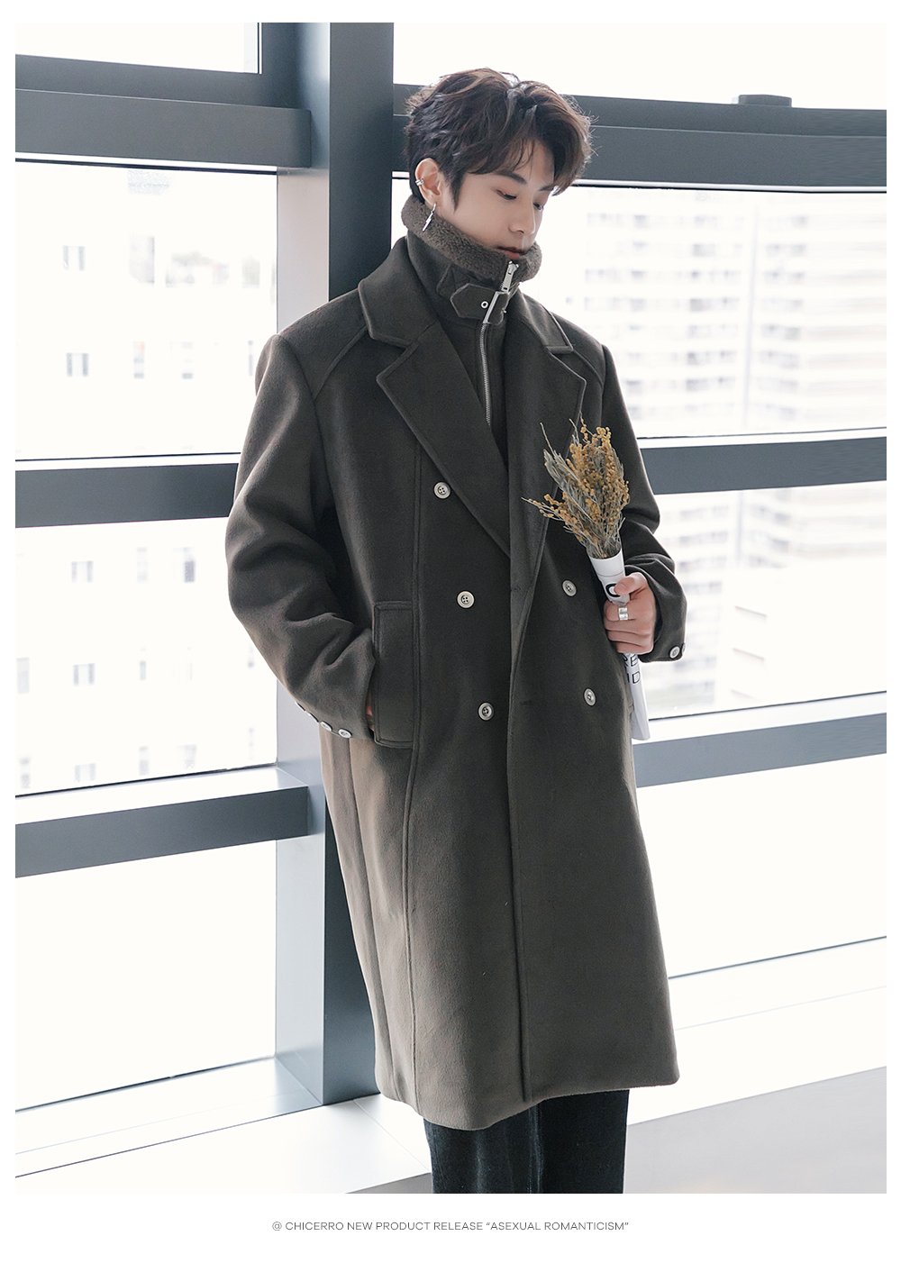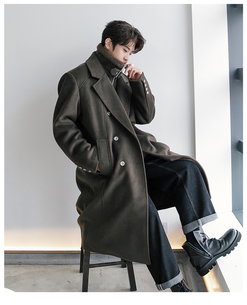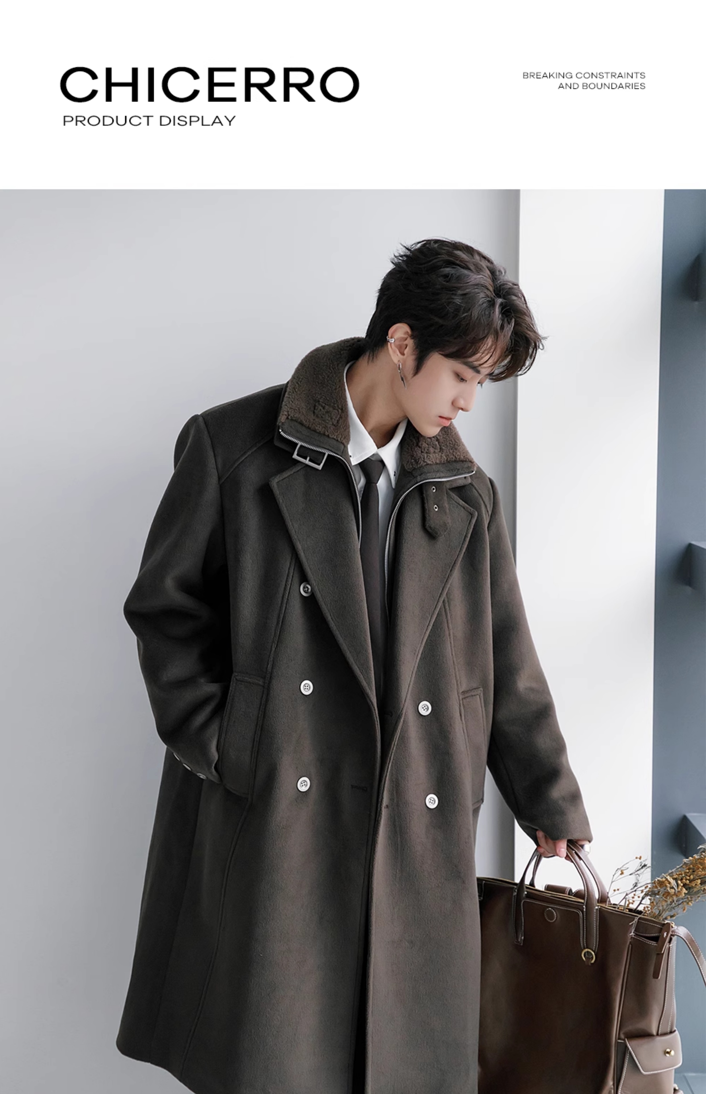 CHICERRO Демисезонная длинная куртка, утепленное шерстяное пальто