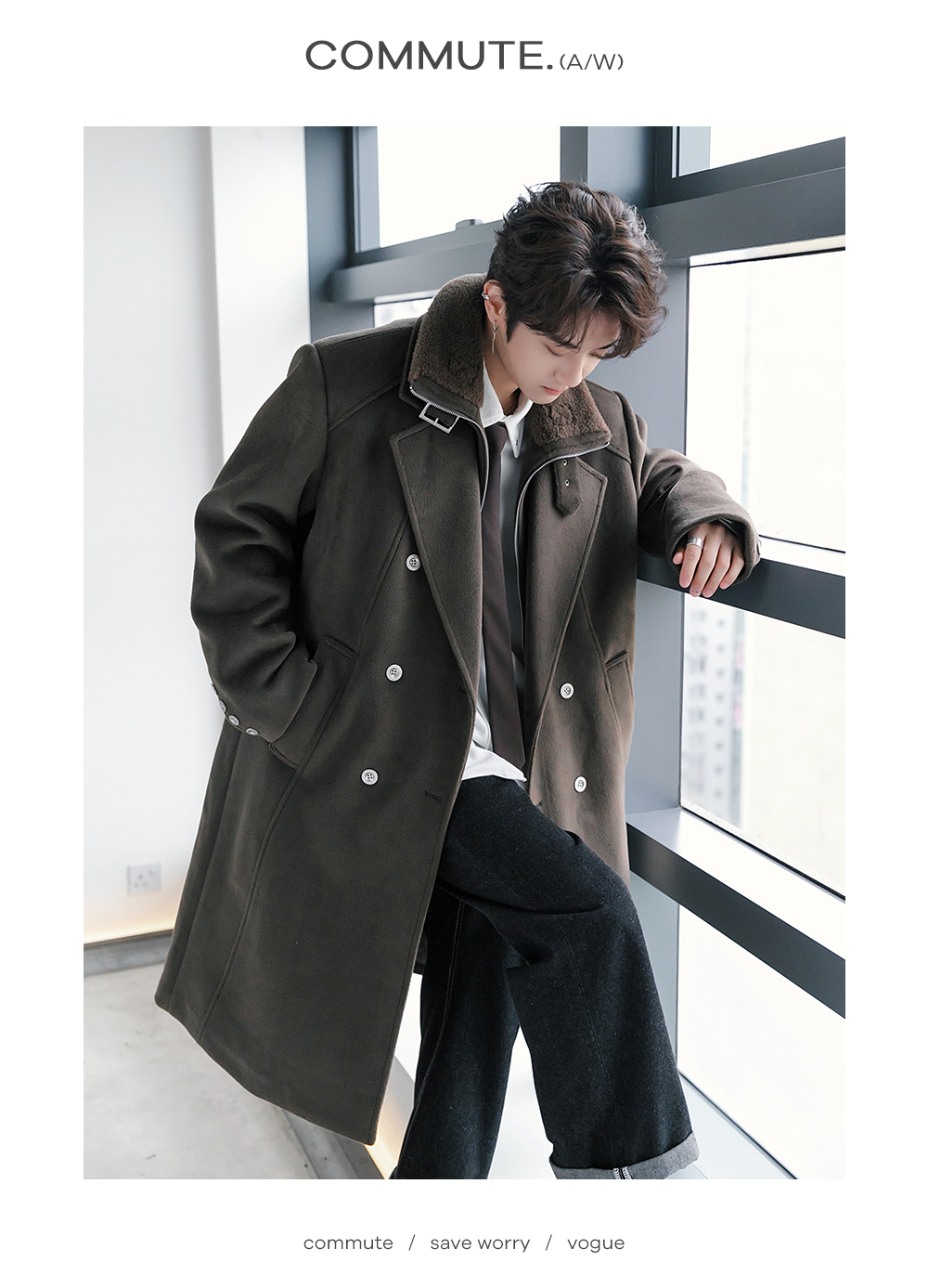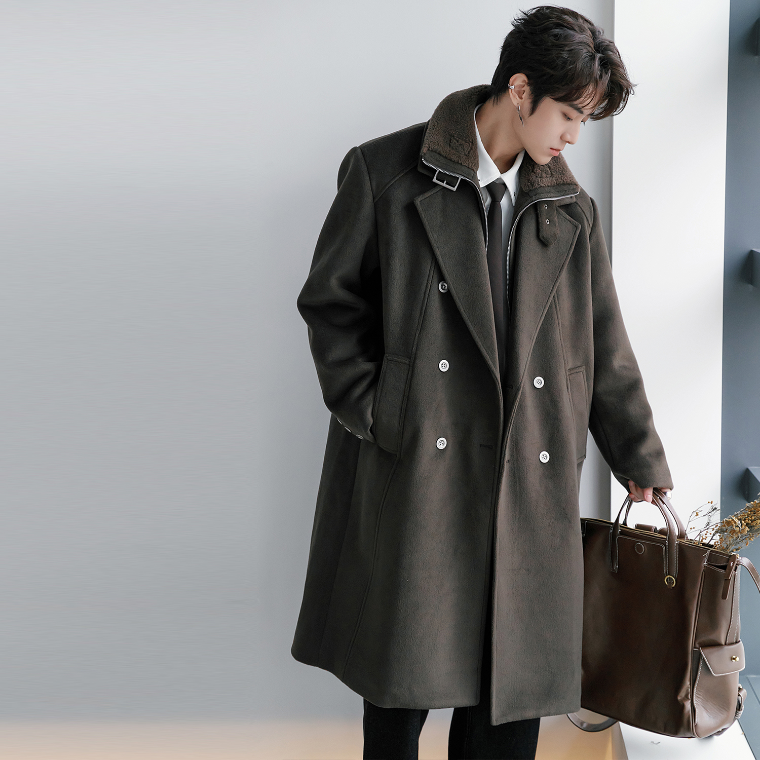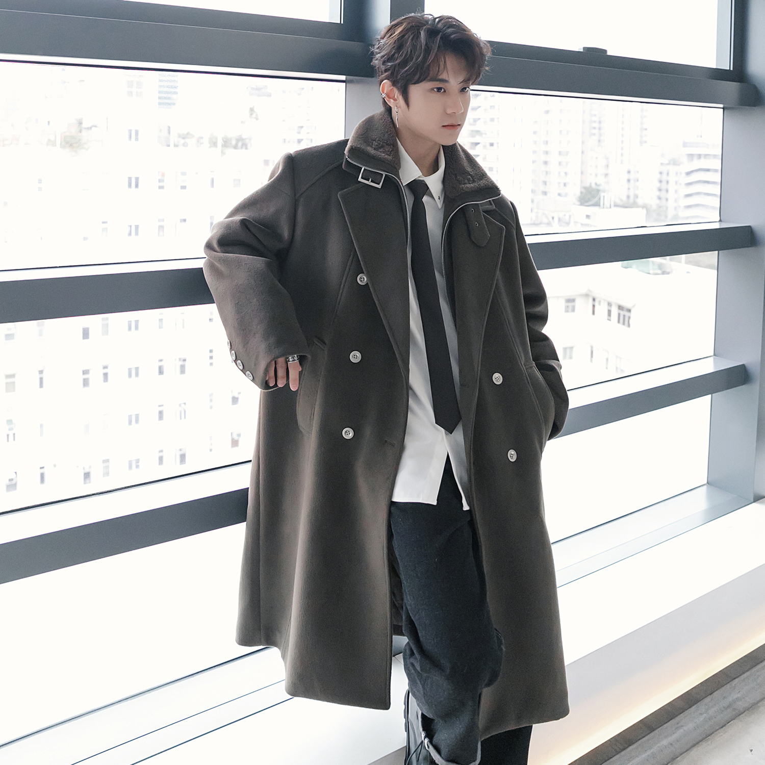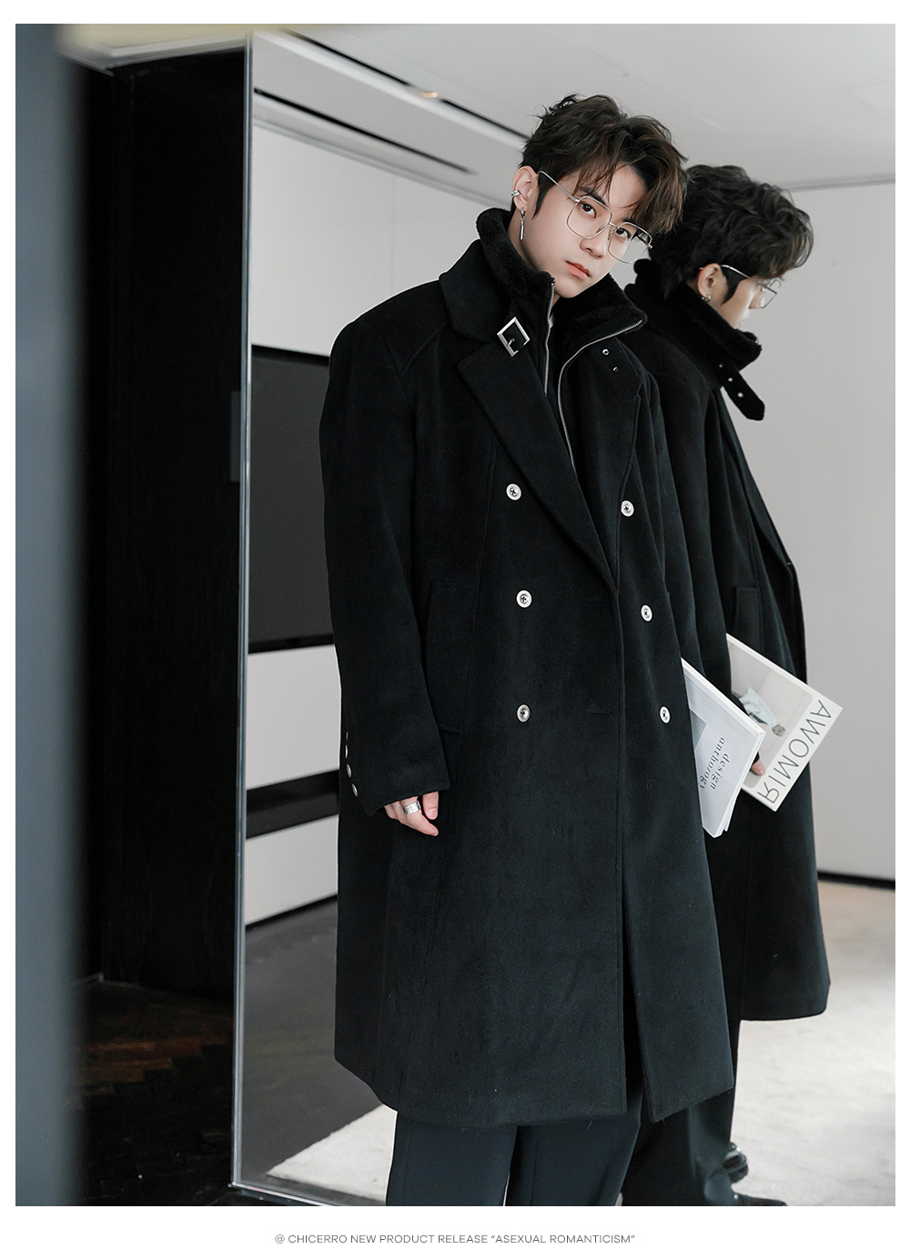 CHICERRO Демисезонная длинная куртка, утепленное шерстяное пальто
