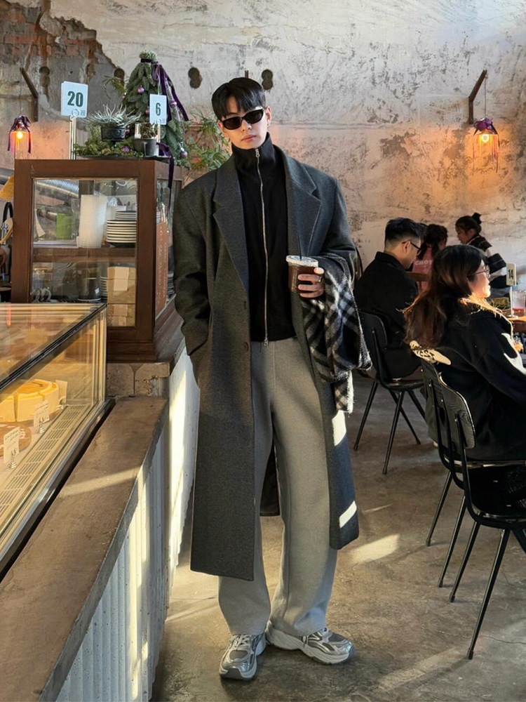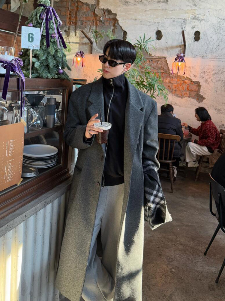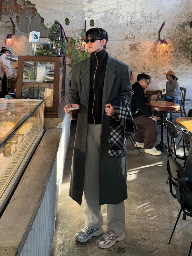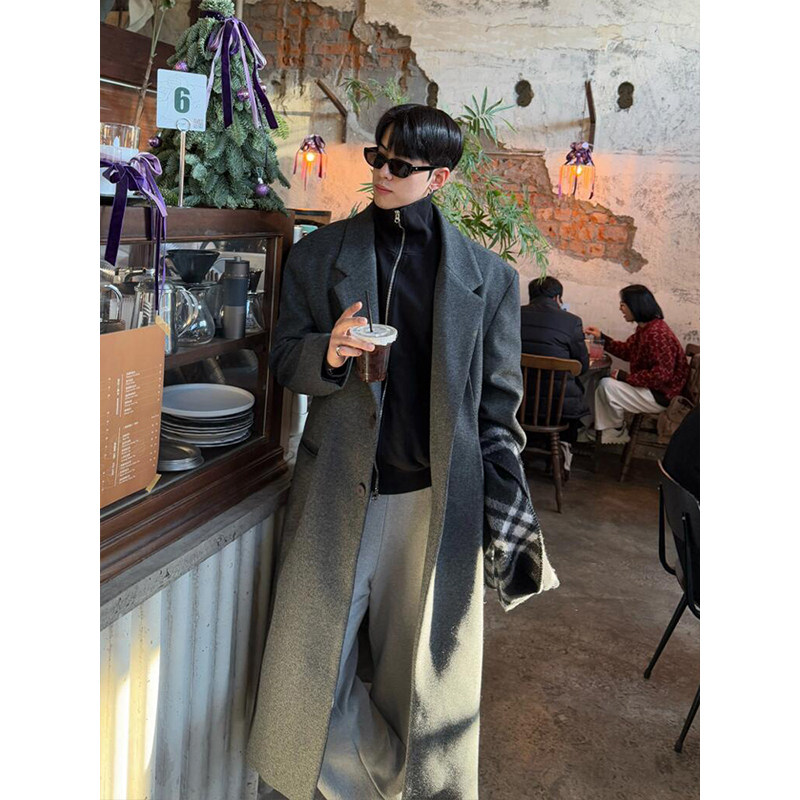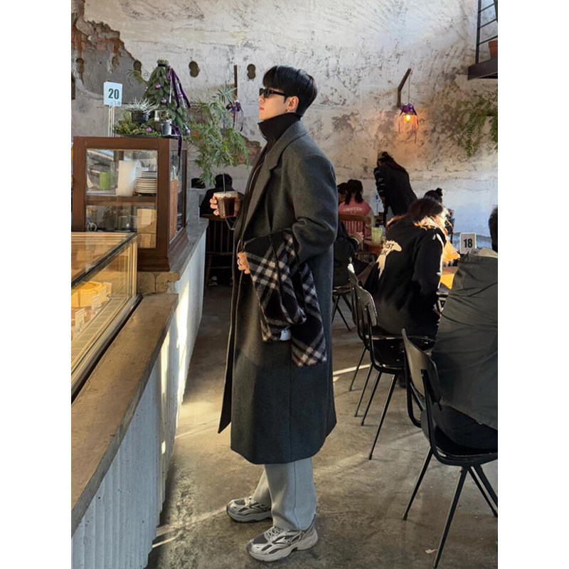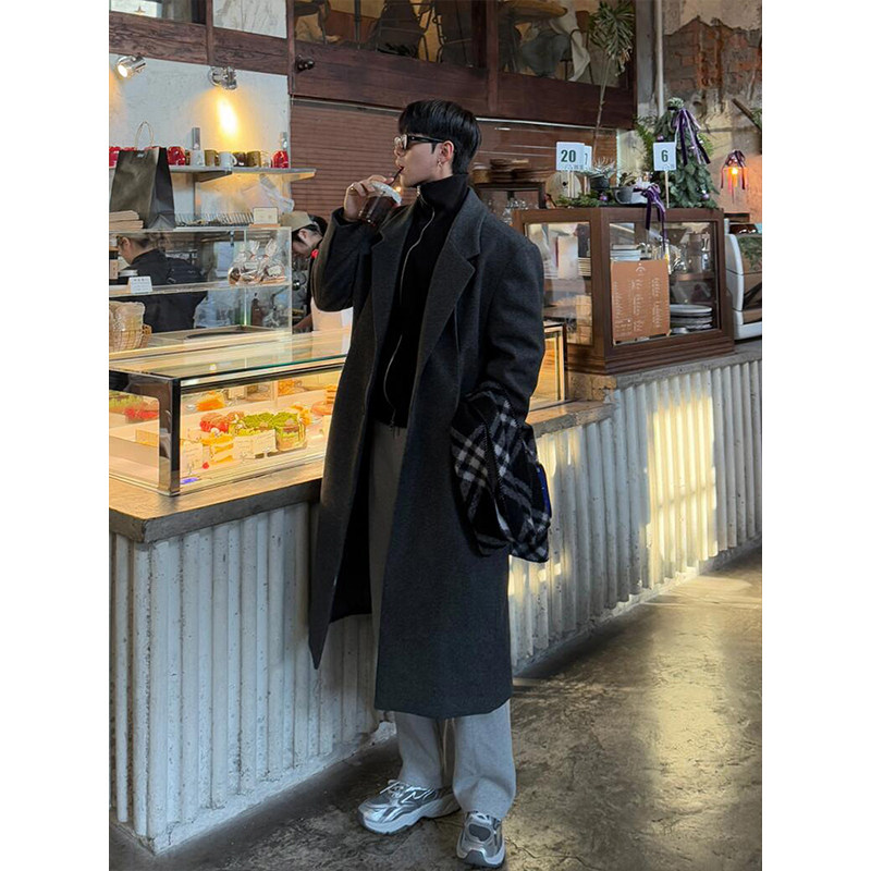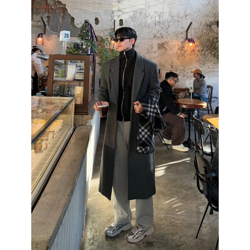 Демисезонное шерстяное пальто, длинный плащ, в корейском стиле, изысканный стиль, длина макси