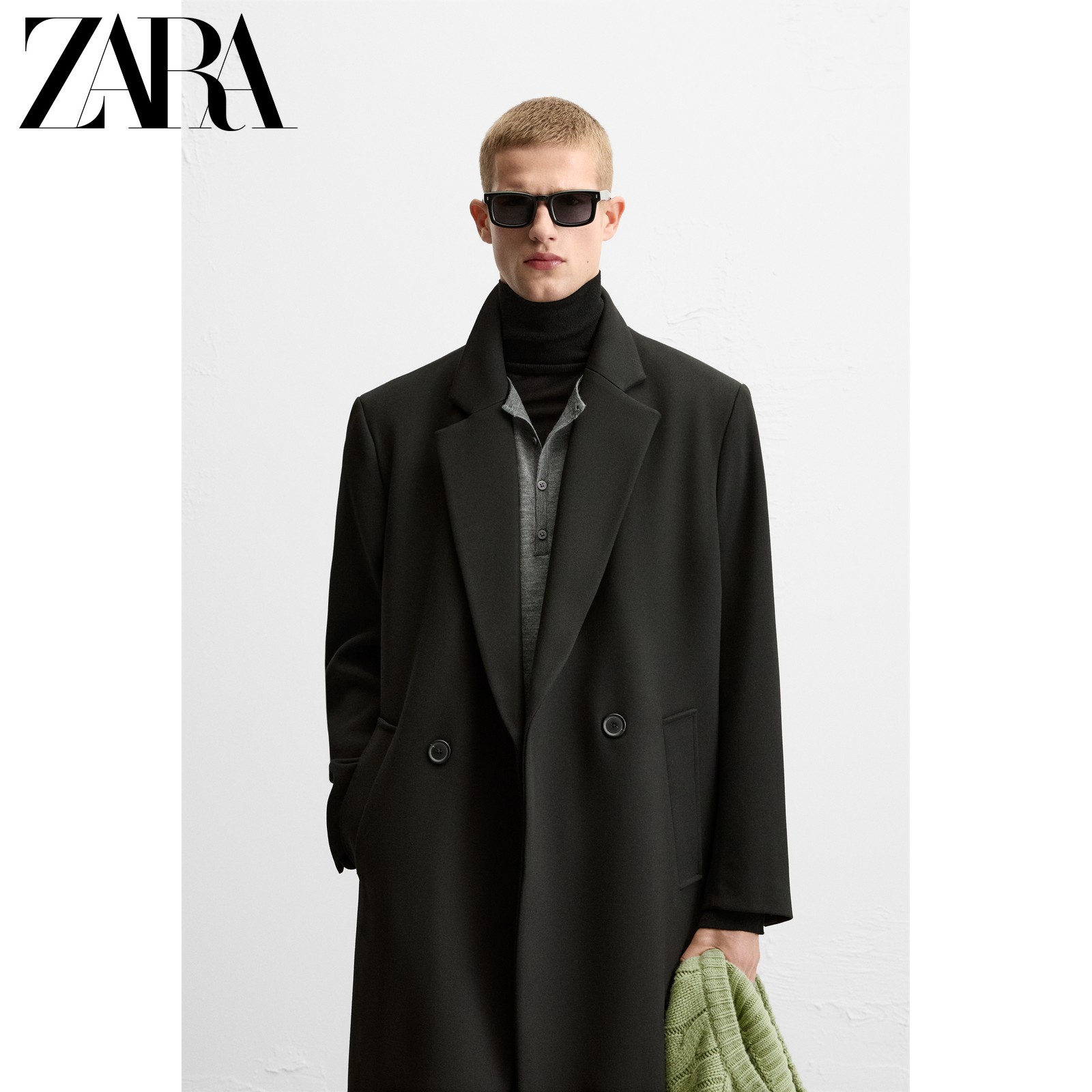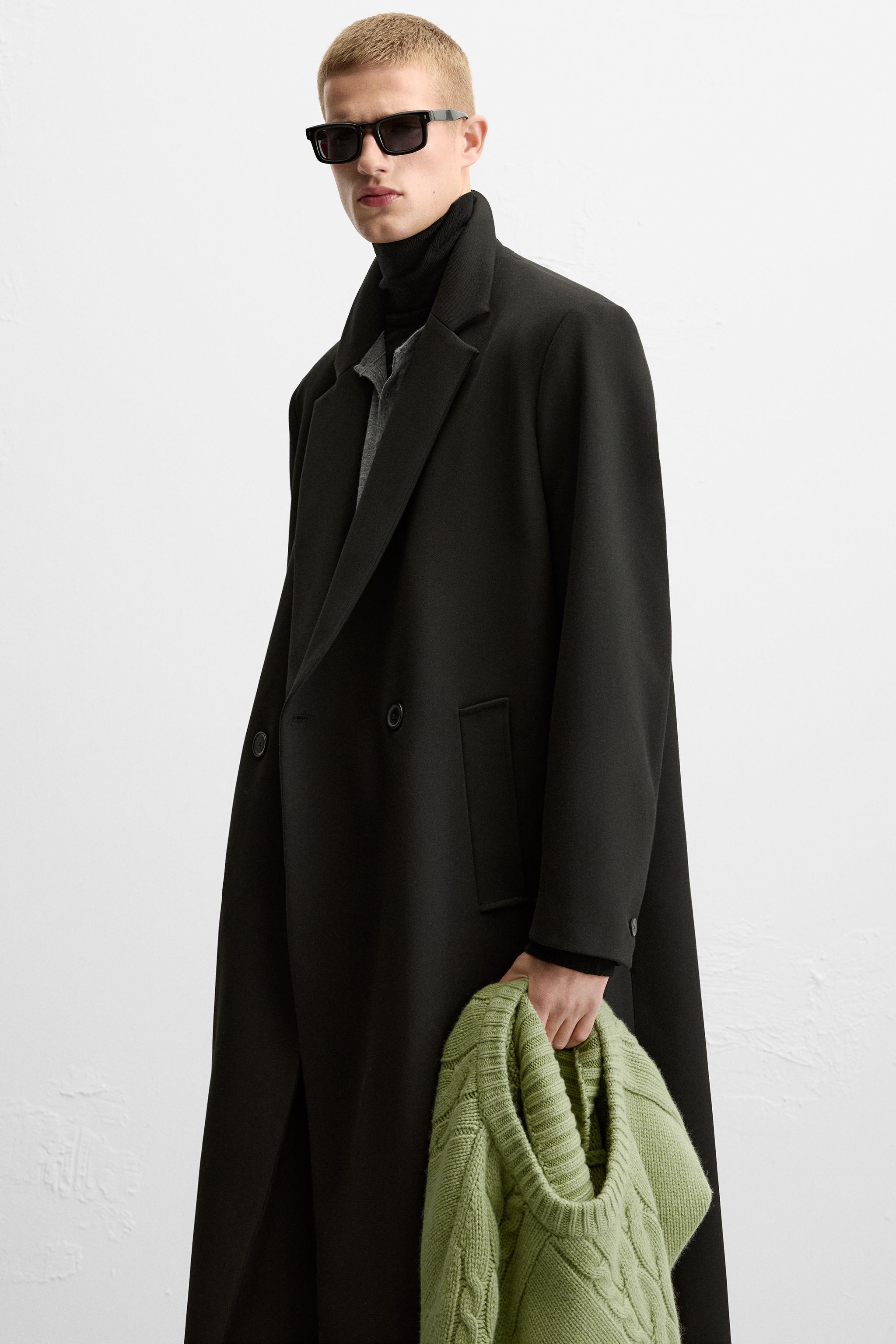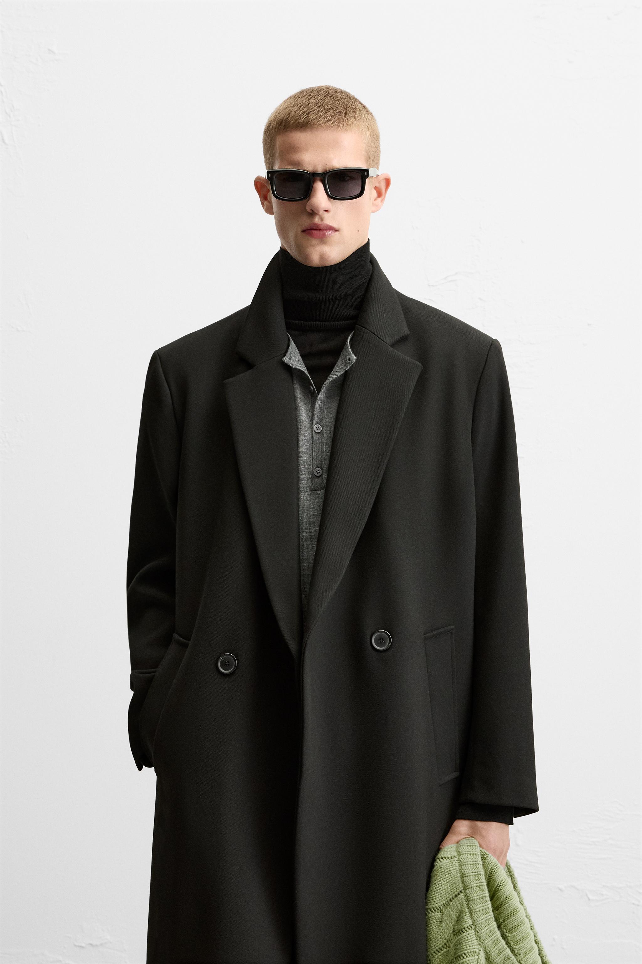 ZARA Весенний черный лонгслив, пальто, свободный крой