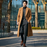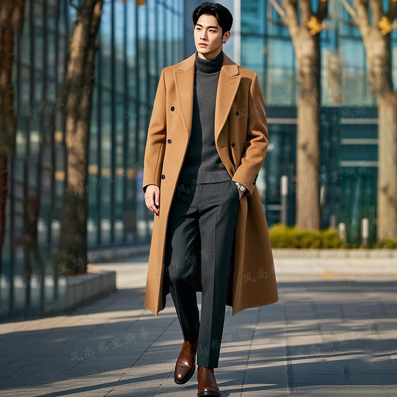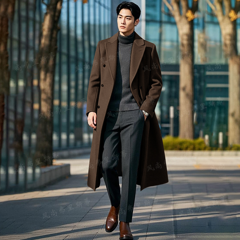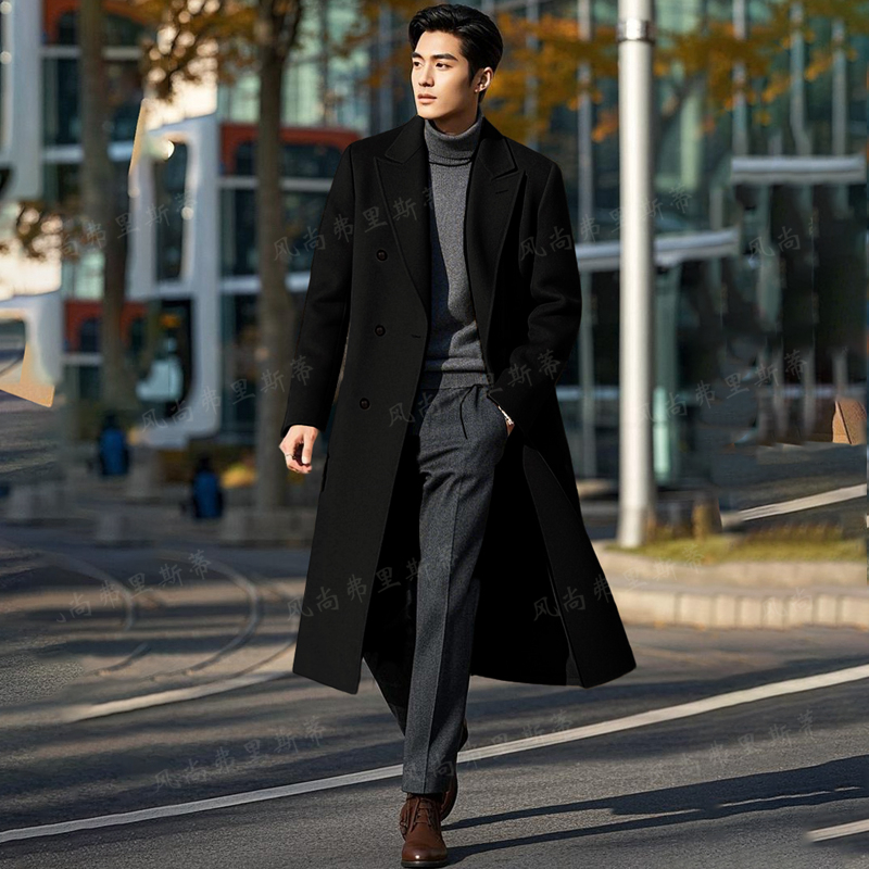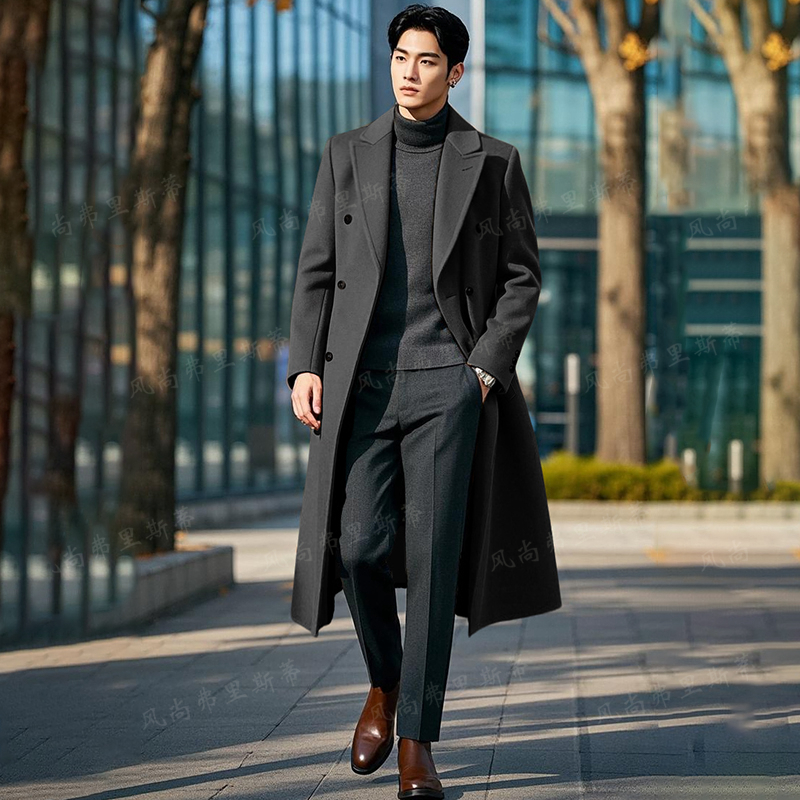 Длинная шерстяная зимняя куртка, модное шерстяное пальто в английском стиле, длина макси, в британском стиле, облегающий крой