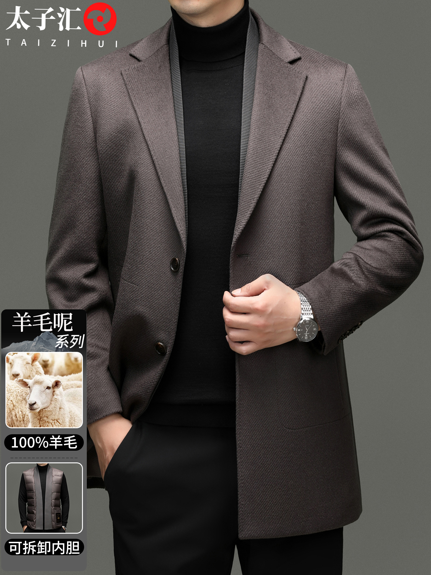 Мужской шерстяной съемный вкладыш, двусторонная длинная куртка, средней длины