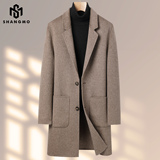 Элитное шерстяное двусторонное кашемировое длинное демисезонное шерстяное пальто, куртка, средней длины