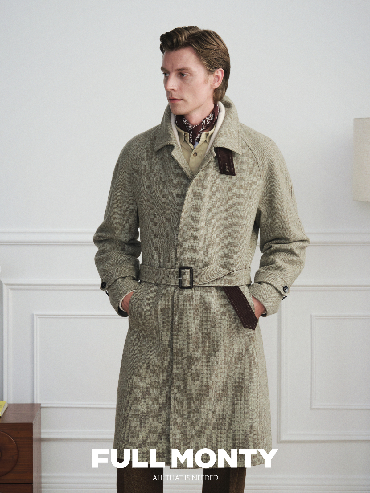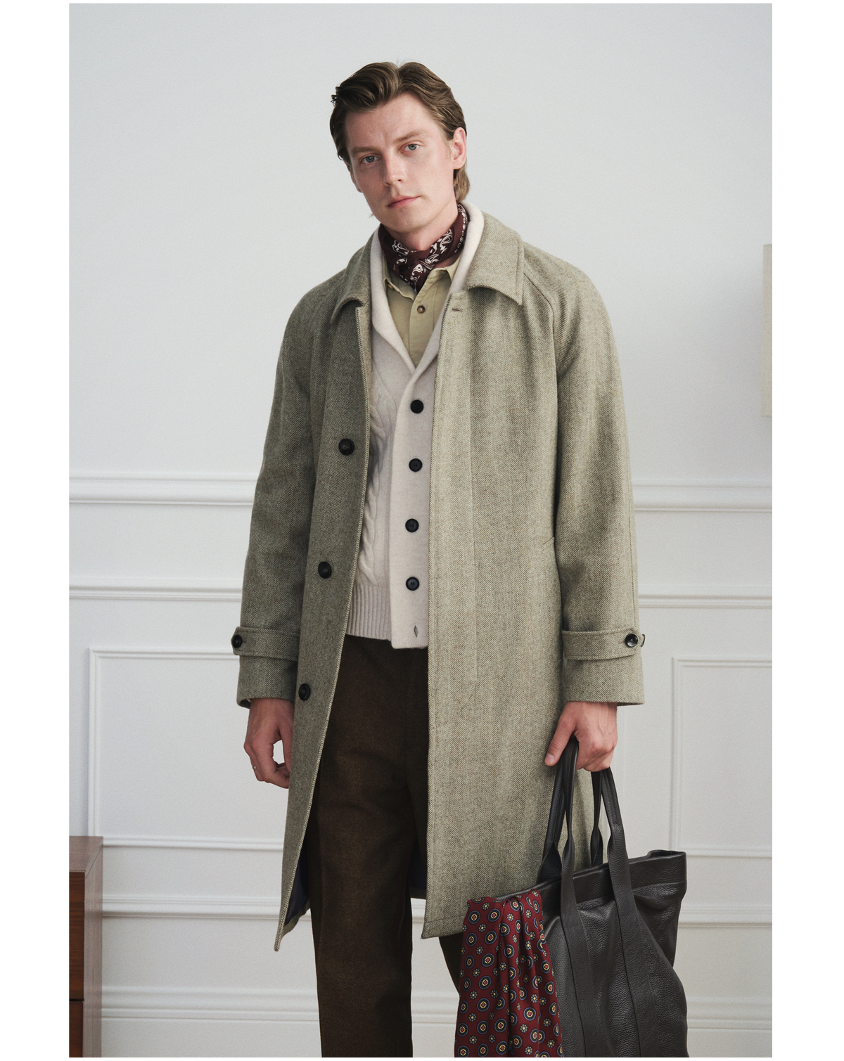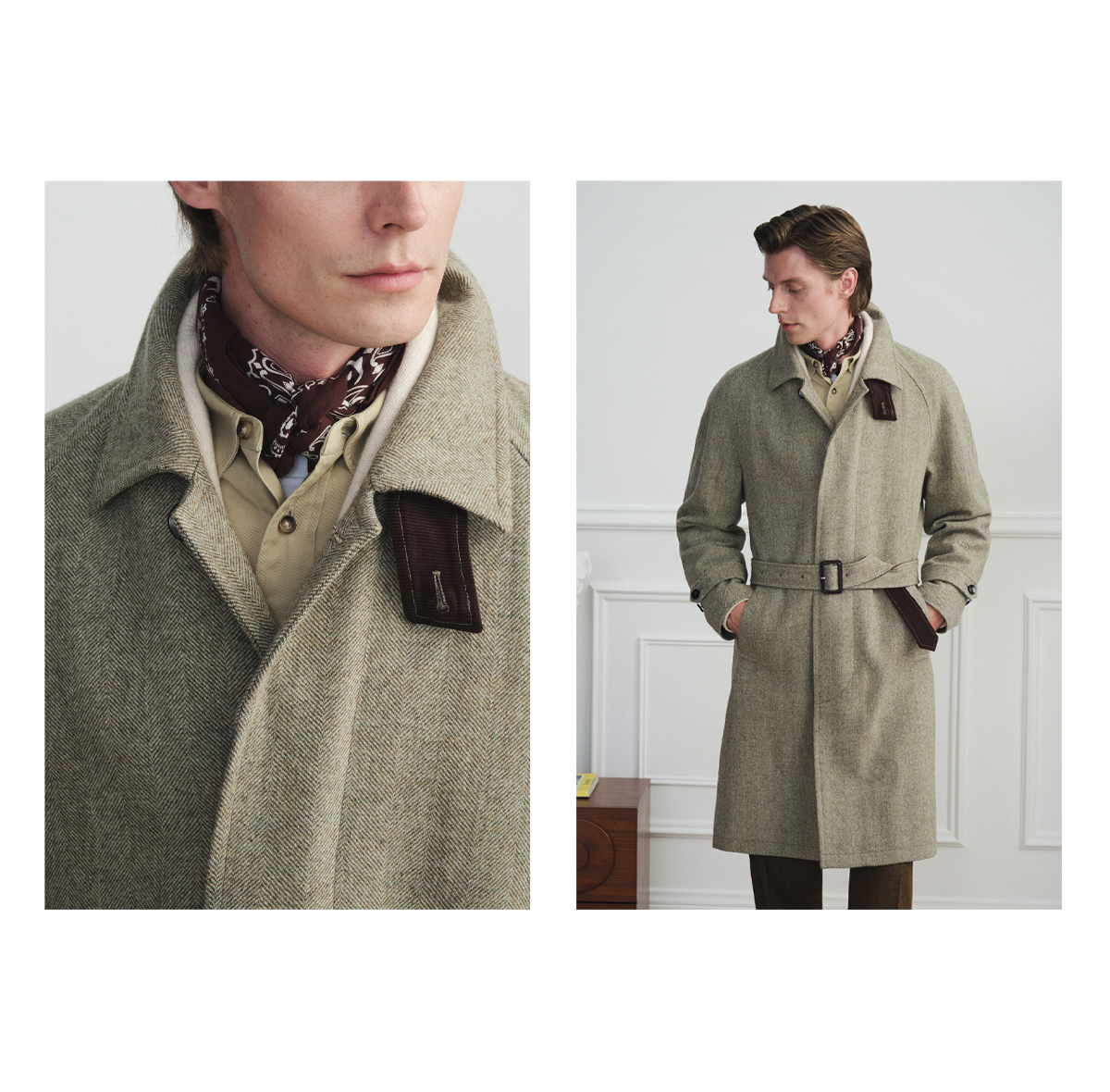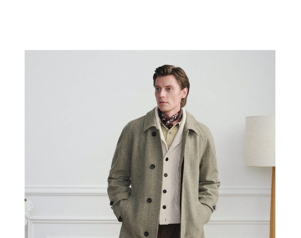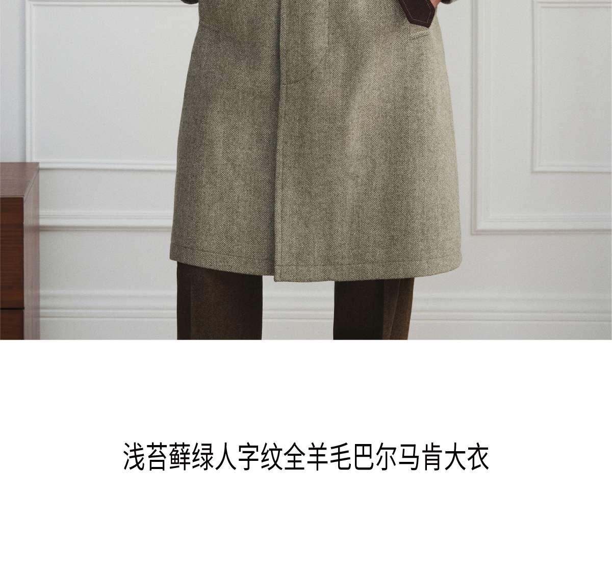 [Новый стиль] Balmakken Мужское зеленое шерстяное пальто с узором «елочка» в деловом стиле повседневное пальто с лацканами 2025 осень и зима