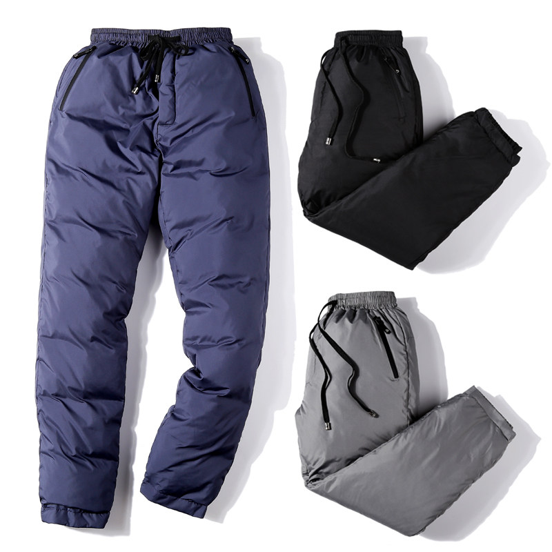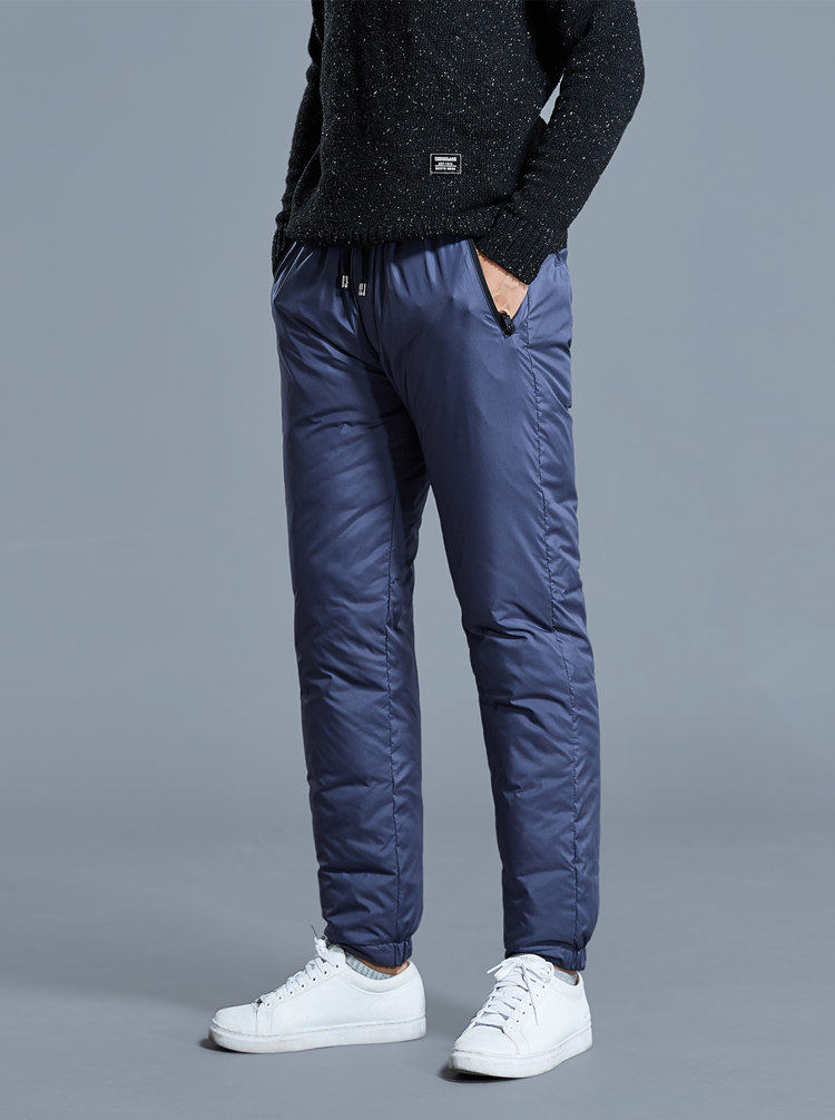 Демисезонные утепленные спортивные бархатные штаны с пухом, облегающий крой, утиный пух