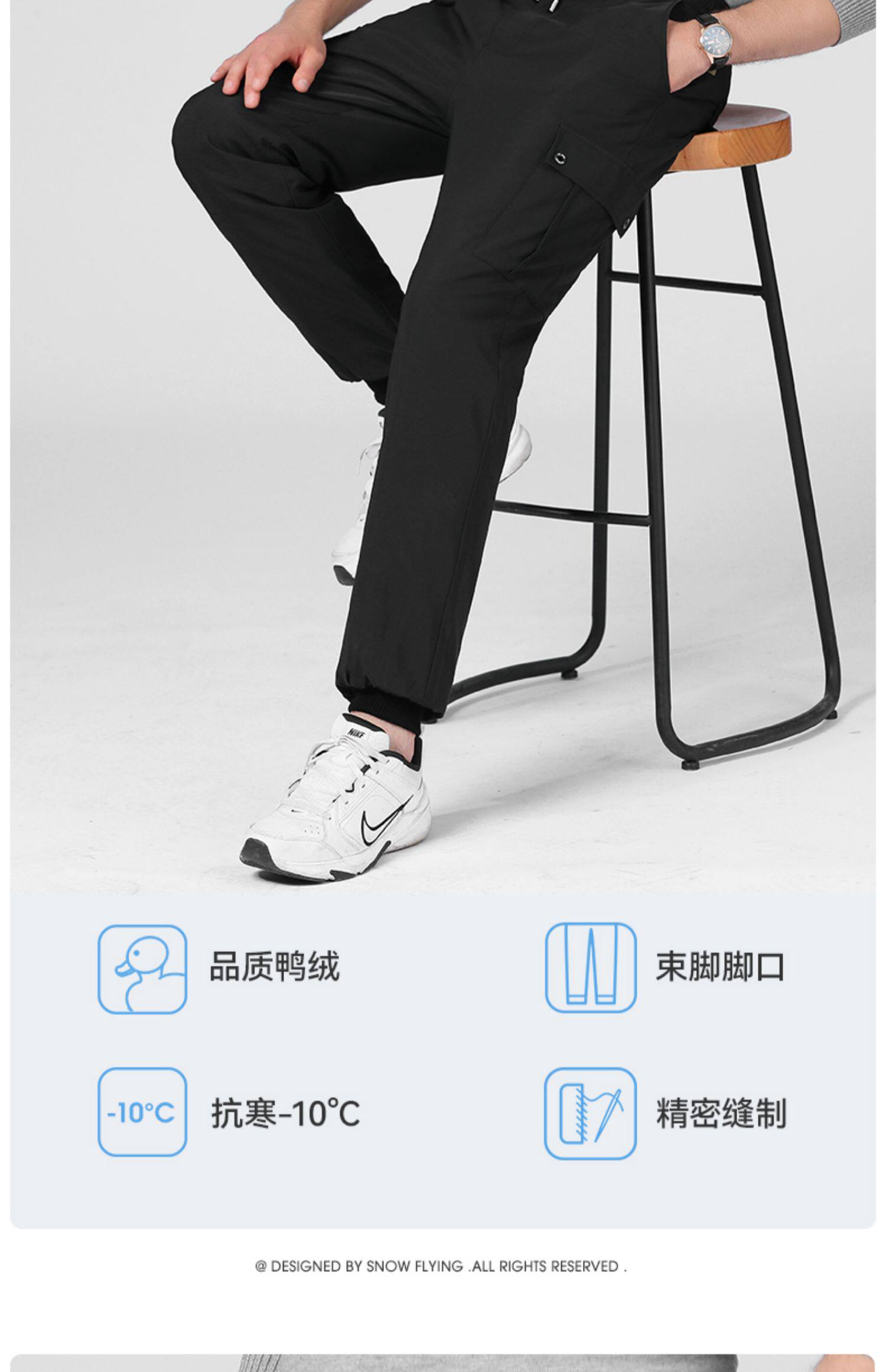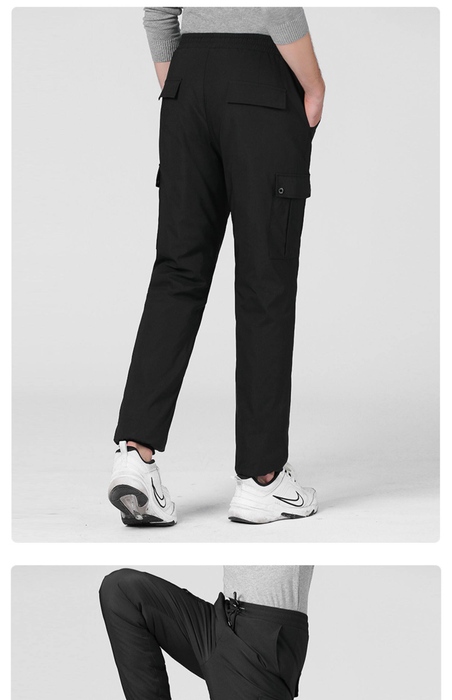 Демисезонные цветные черные вместительные и большые удерживающие тепло штаны с пухом, увеличенная толщина