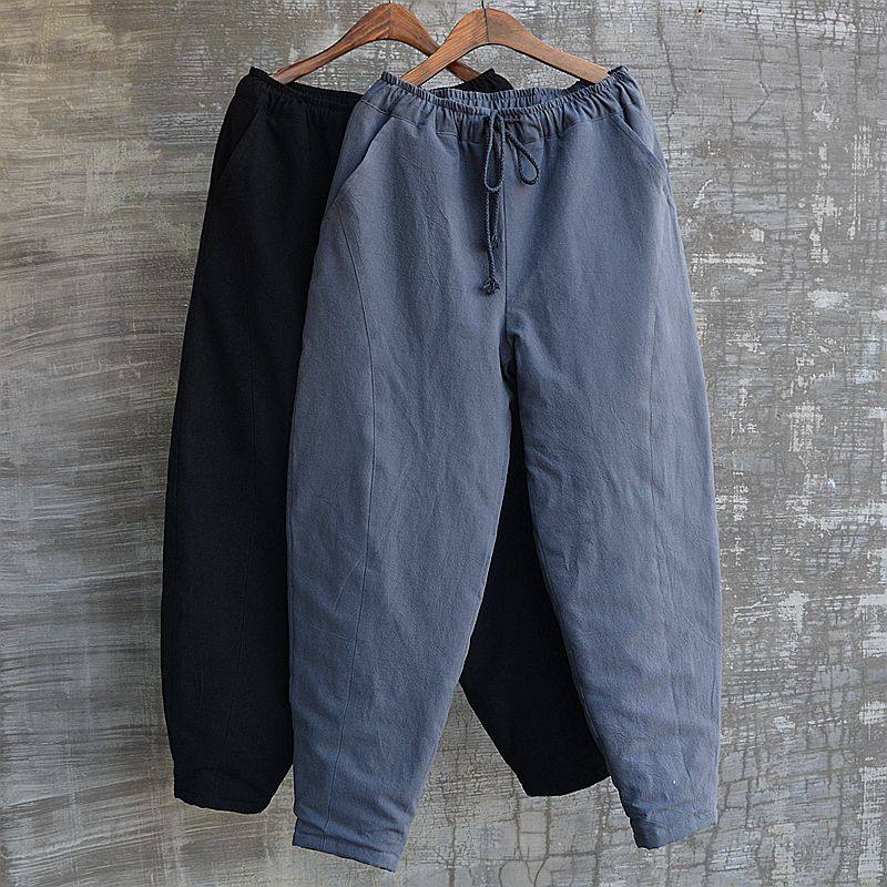 Оригинальные зимние хлопковые модные штаны для отдыха, из хлопка и льна, оверсайз, крой