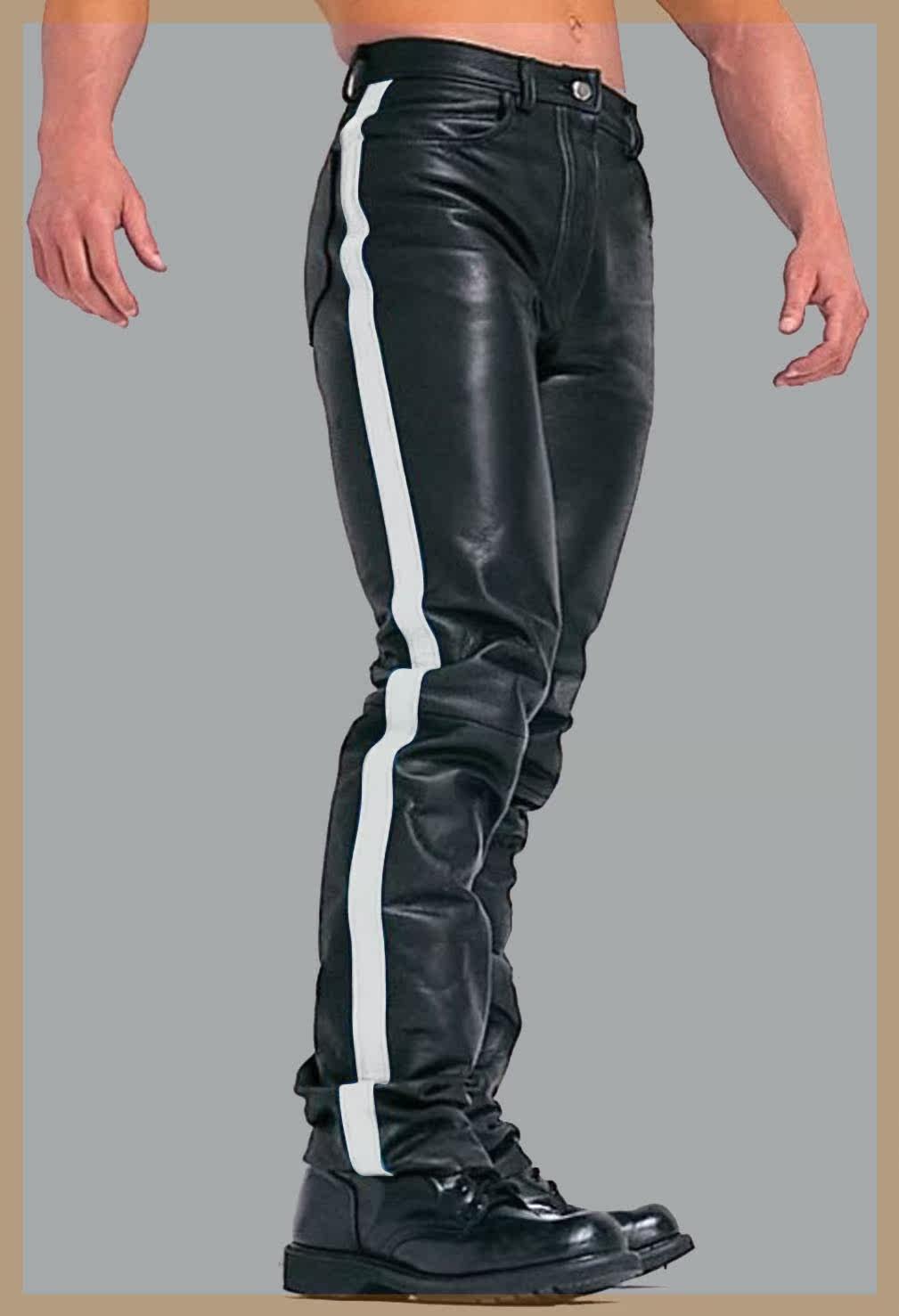 Мужские кожаные брюки больших размеров, модные черные толстые строчки