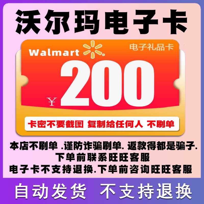Wal -Mart SAM Электронная карта 200 Юань автоматическая выпуск карт 232699 Магазин не одинок, чтобы быть обманутым