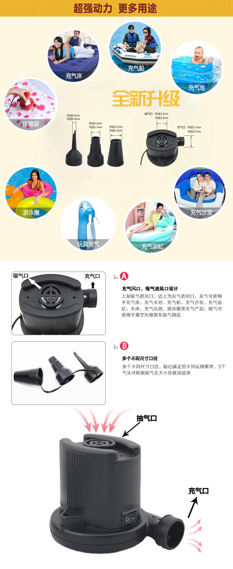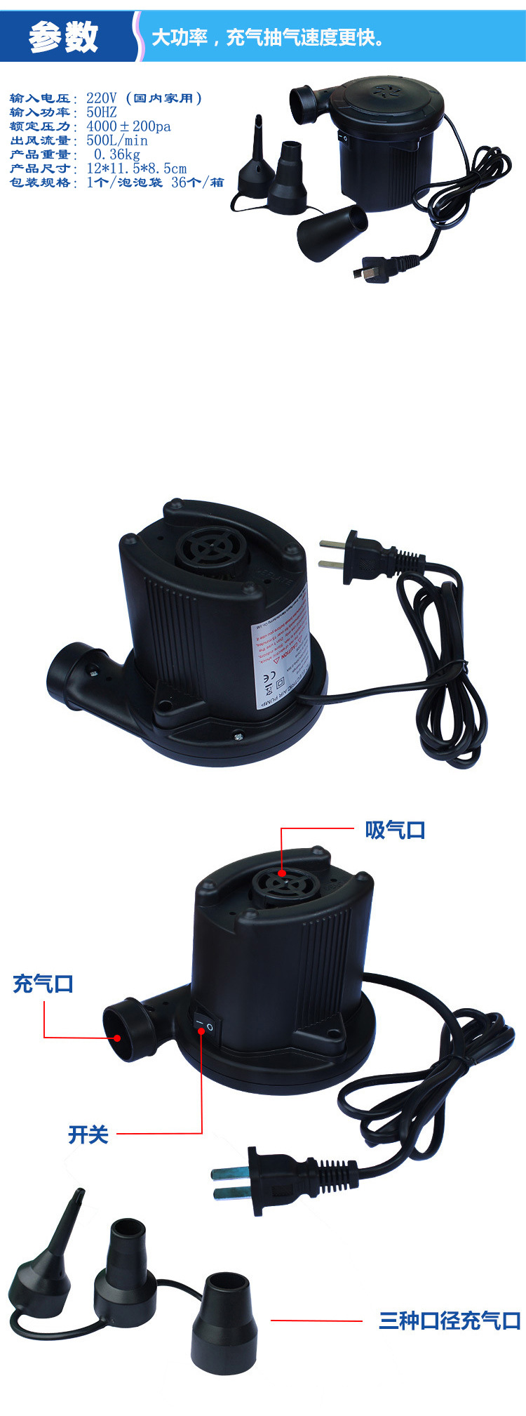 Примечание: каждые 10 минут вращение с высоким уровнем скорости воздушного насоса используется в течение 30 секунд, а затем его нужно приостановить в течение 30 секунд, а затем использовать его. Всегда используйте его для сжигания электрического насоса!