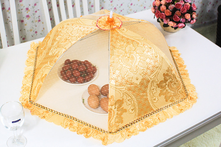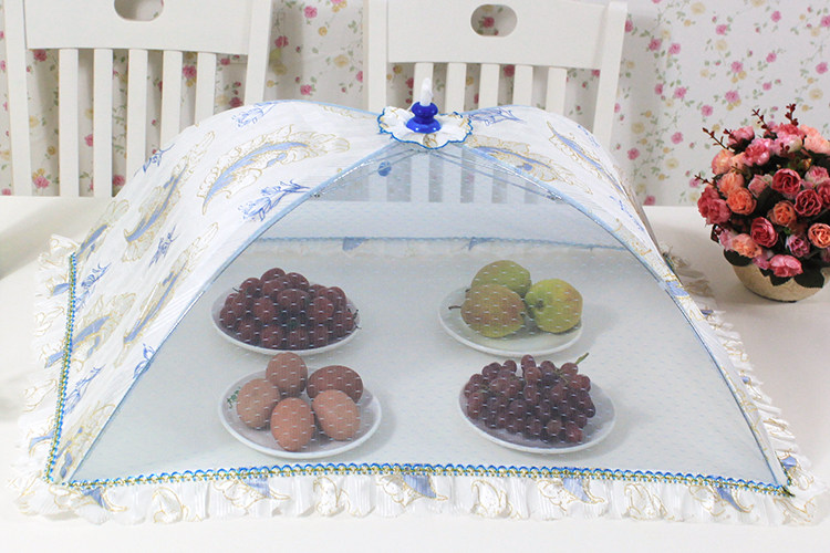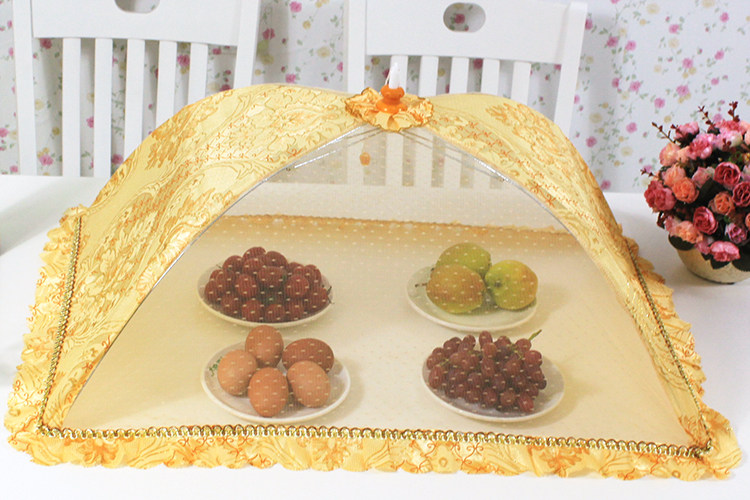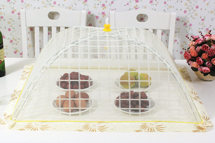 Двойной склад складывает длинное квадратное и плотное круглое пищевое покрытие, покрывающее обеденное столовое столик для профилактики наводнения