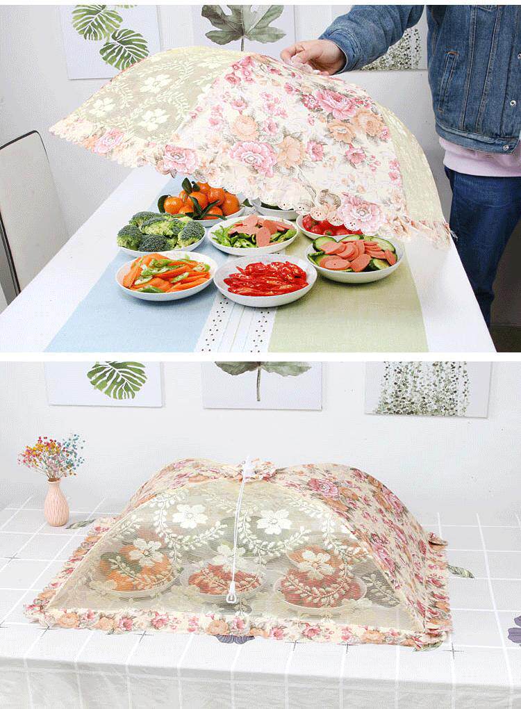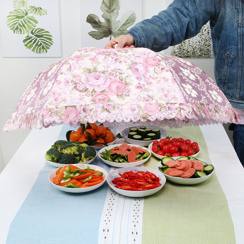 Капюшон в летних домохозяйствах может быть складным настольным покрытием, настольная крышка, еда, продовольствие, покрытый овощными зонтиками, покрытие на столовой крышке, покрытие