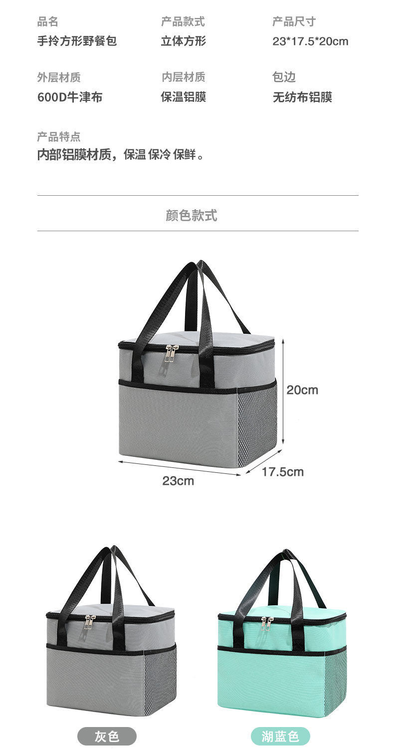 Квадратная большая портативная термосумка, дорожная барсетка, портативный ланч-бокс, термос, увеличенная толщина