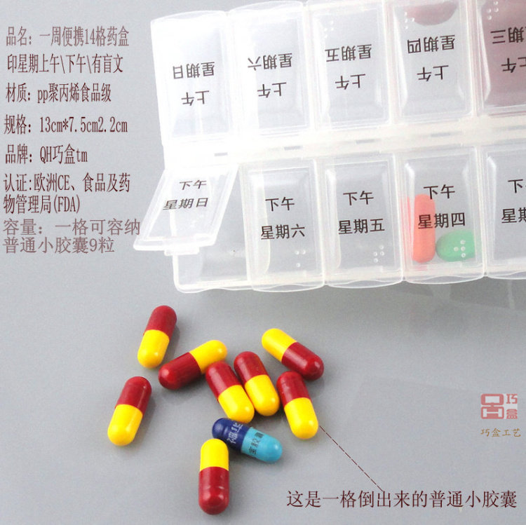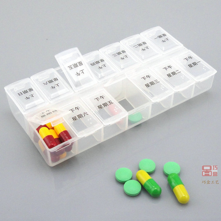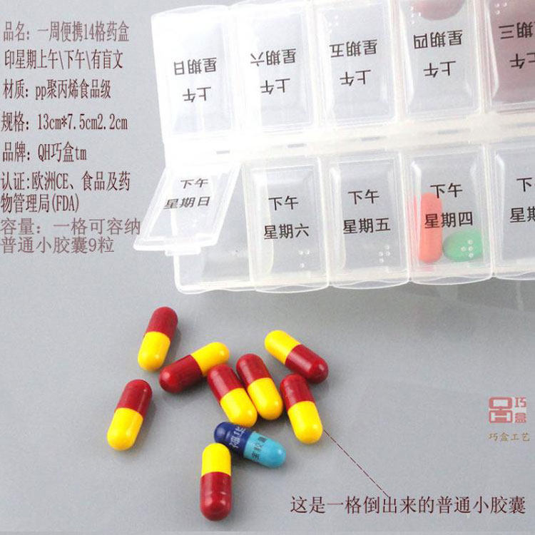 БЕСПЛАТНАЯ ДОСТАВКА 14 сетки Прозрачная на одну неделю маленькая коробка для таблеток 2 раза ежедневная пищу питания -Расширяйте маленькие таблетки