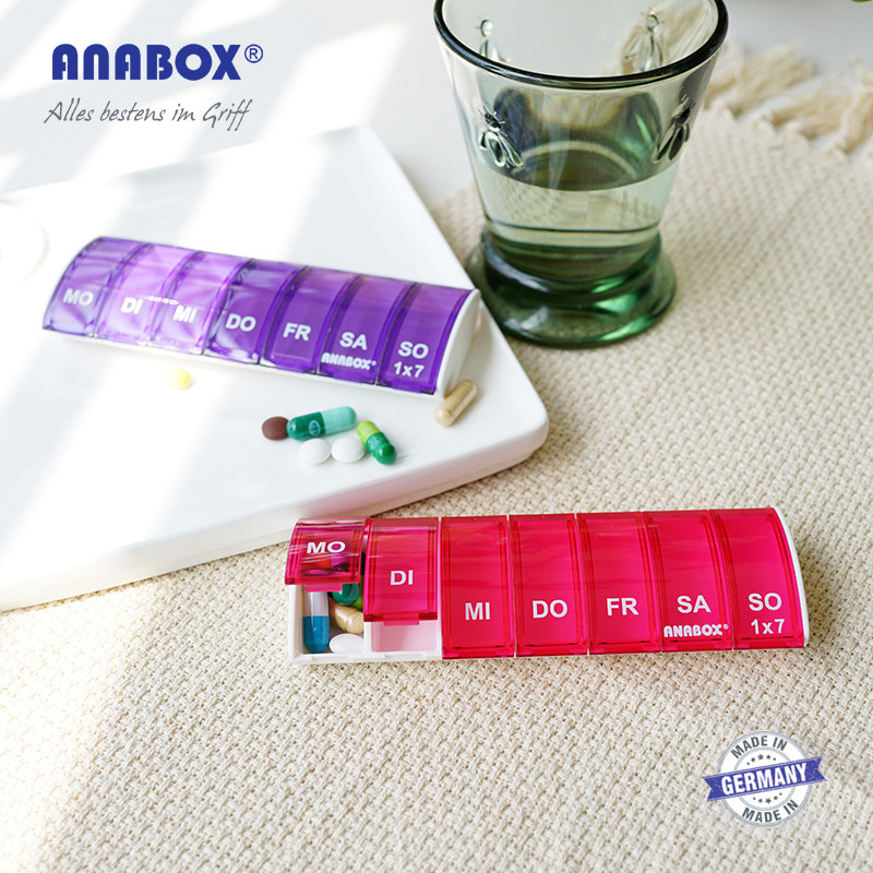 - Ana Purple -Red Seven -Grid Portable Medicine Box
