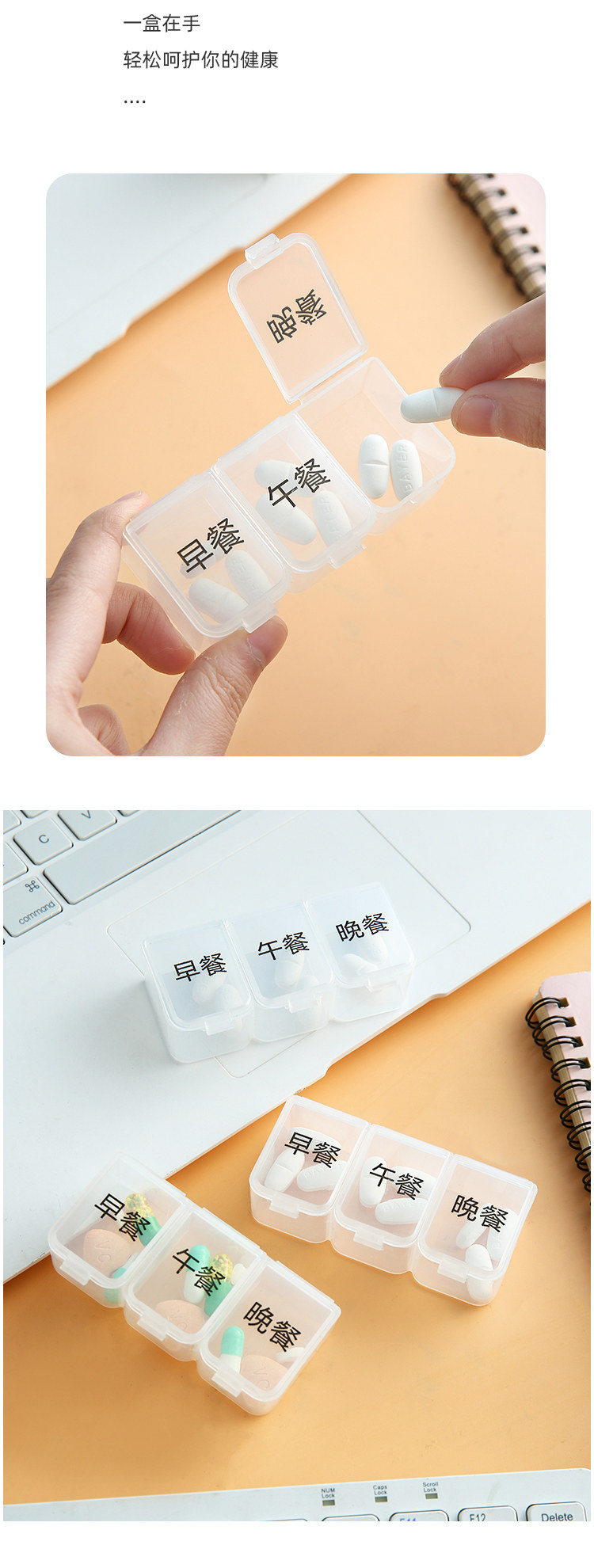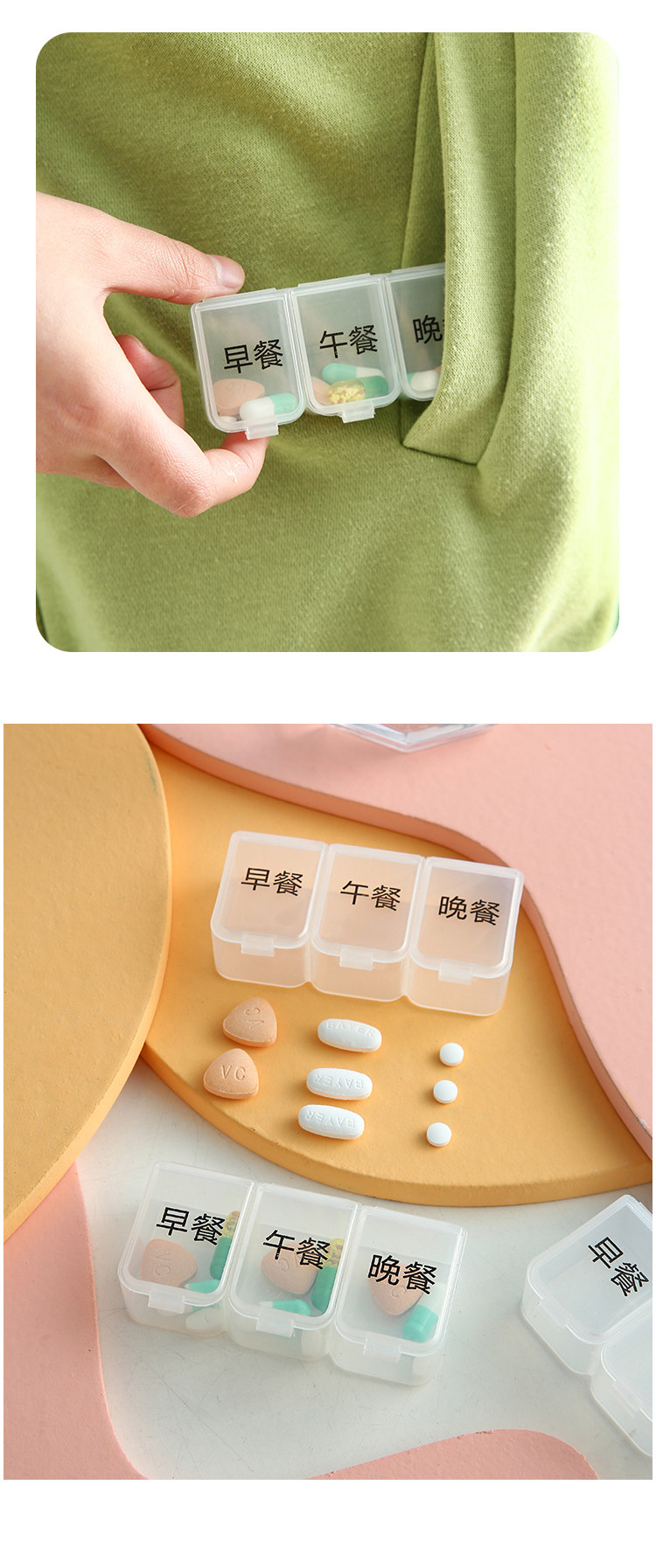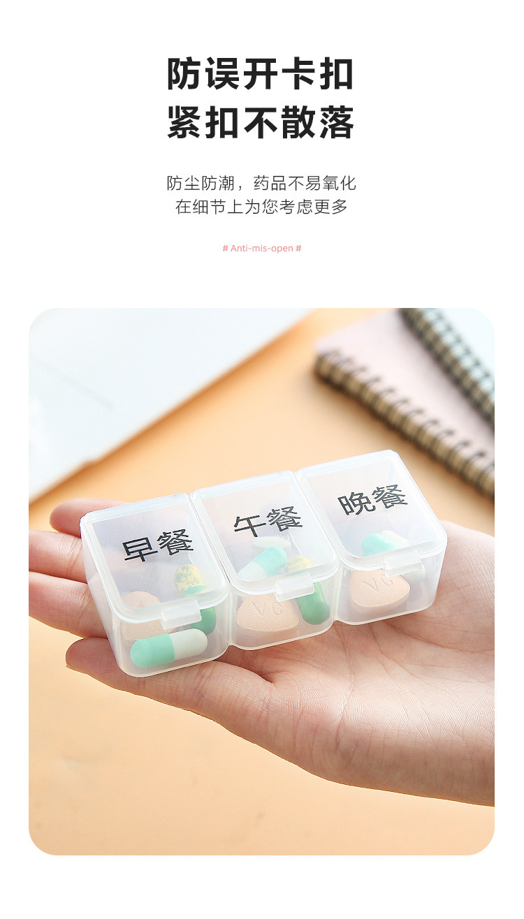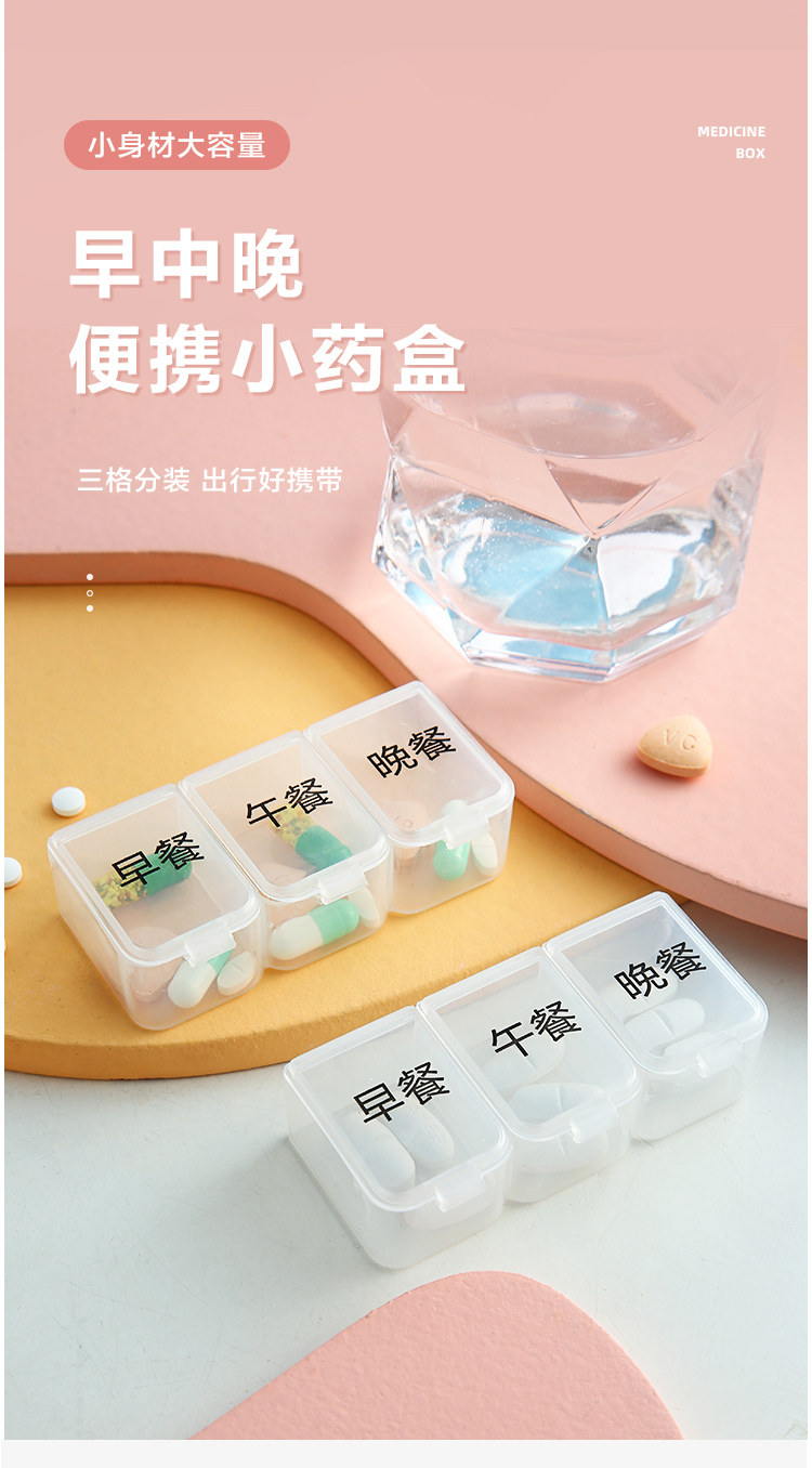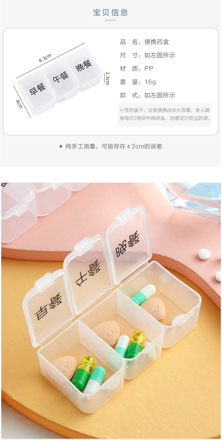 Банка для хранения, маленькая тара, коробка для хранения, вместительная и большая таблетница, 3 ячеек