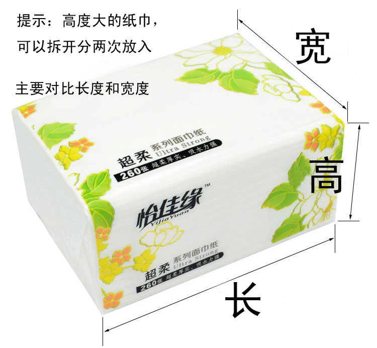 - Длинная коробка для бумажного полотенца: длиной 24 см в высоту 9 см) (в основном используется для более длинной насосной бумаги)
