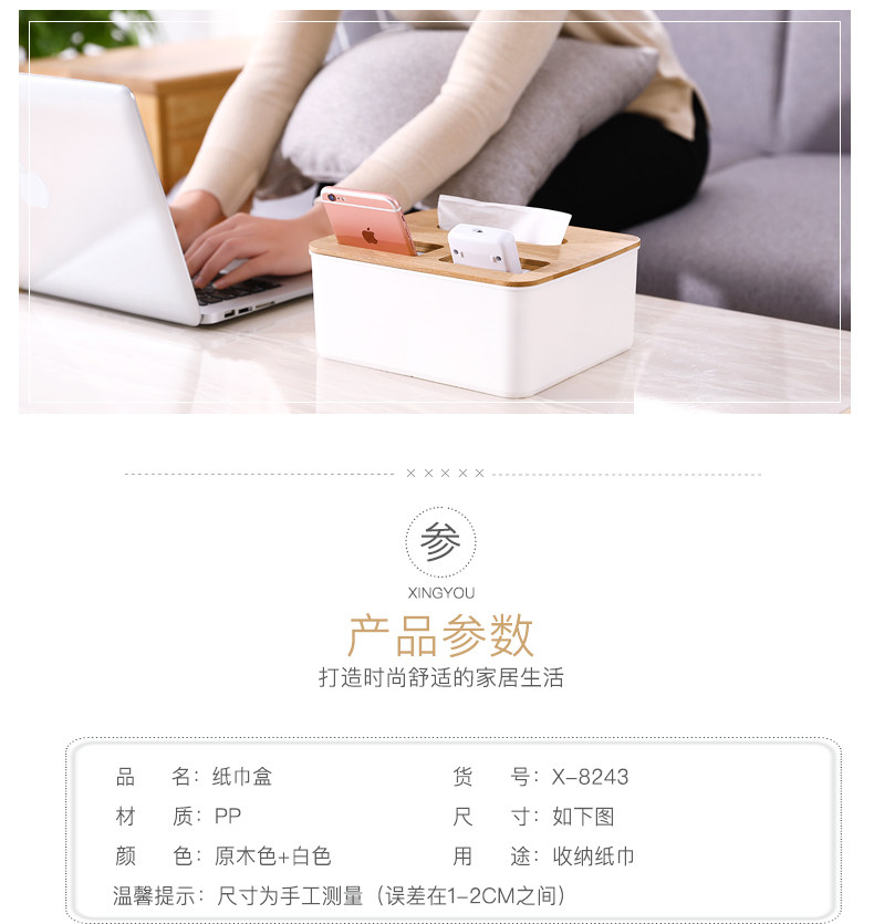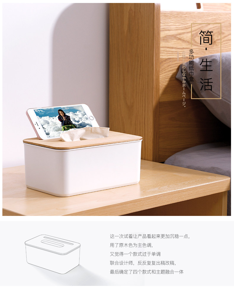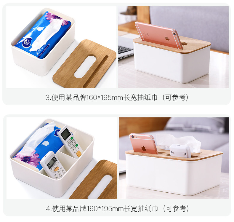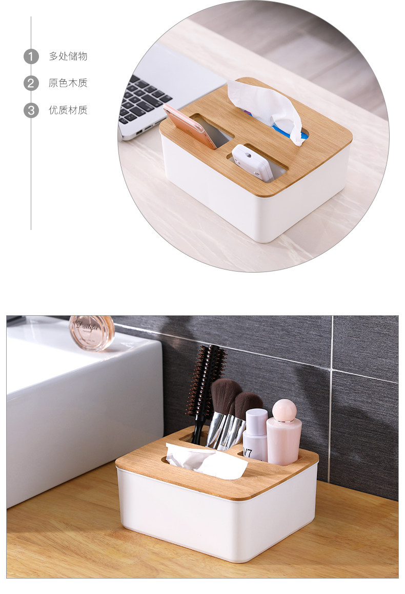 Салфетки, пульт, мобильный телефон, настольная пластиковая коробка для хранения из натурального дерева