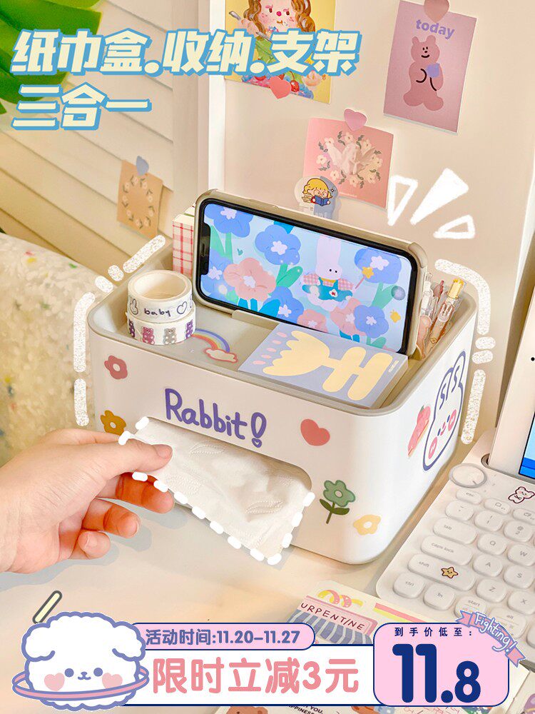 Настольная милая коробка для хранения, салфетки, универсальный держатель для телефона, держатель для ручек