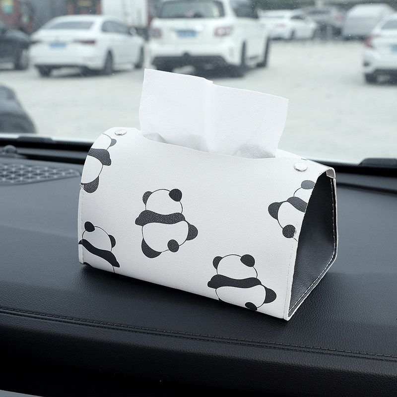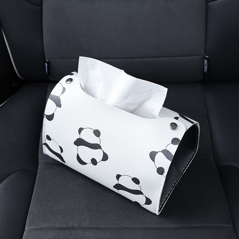 INS Ощечащая кожаная дизайн версии милой бумажной карикатурной коробки Panda Caruling Paper Car Vinging -Type Armrest Box Paper Cover Cover