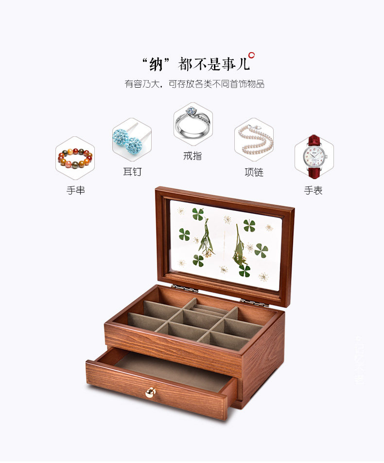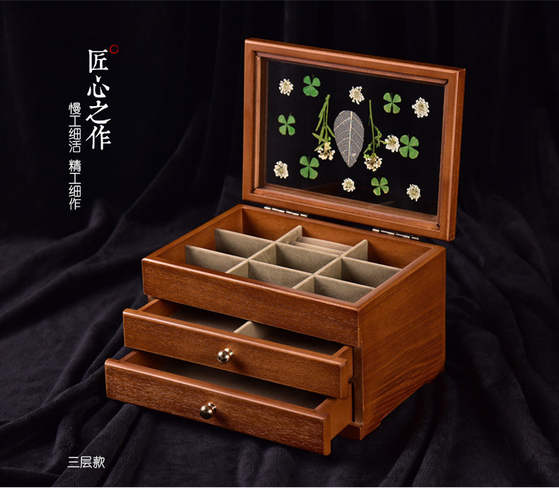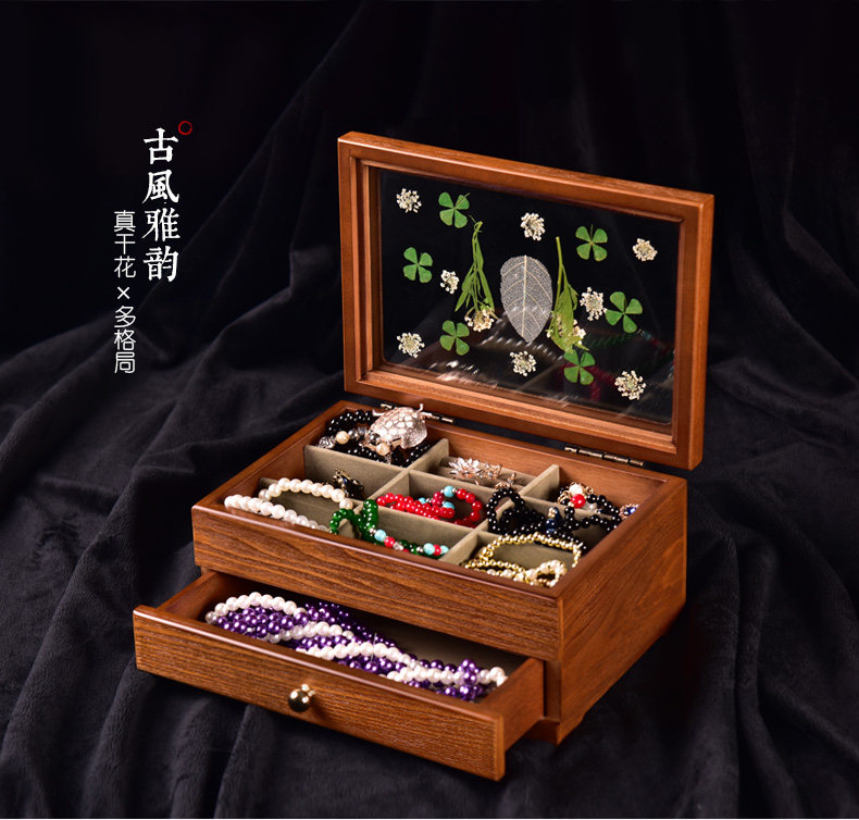 弘艺堂 Деревянная коробочка для хранения, ювелирное украшение, сундук с сокровищами, аксессуар, ожерелье, вместительная и большая ретро многослойная коробка для хранения, европейский стиль, китайский стиль