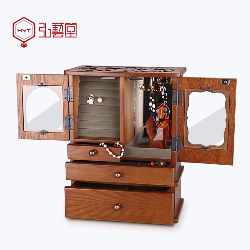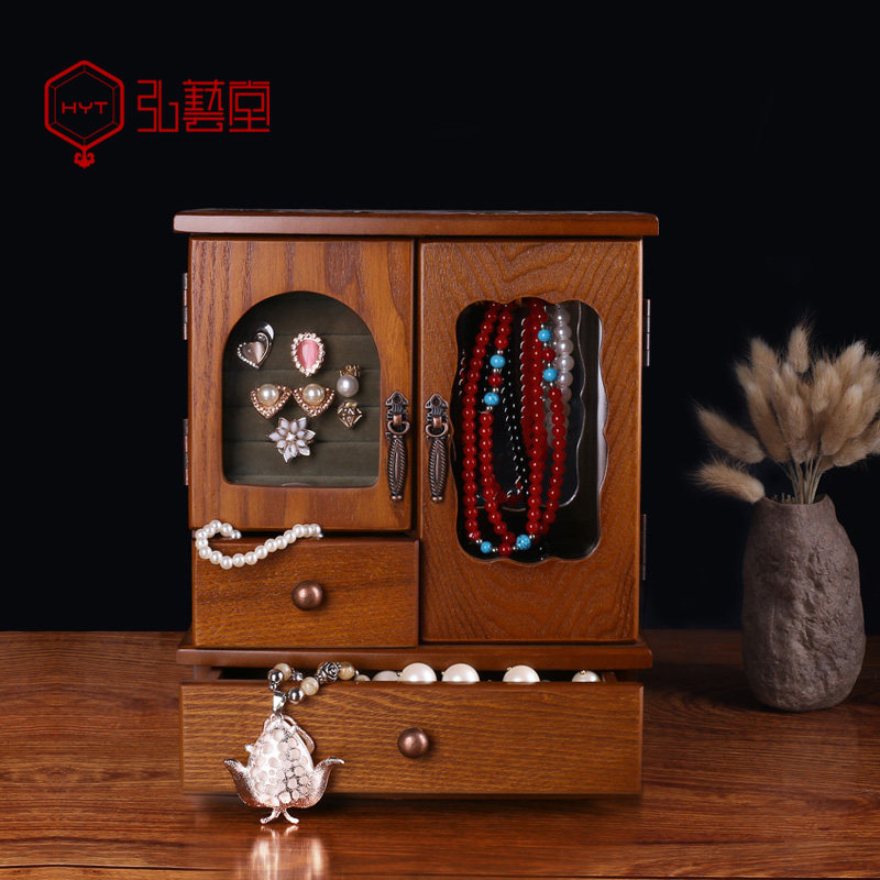 弘艺堂 Деревянная коробочка для хранения, ювелирное украшение, сундук с сокровищами, серьги, аксессуар, ретро вместительная и большая коробка для хранения, китайский стиль, европейский стиль