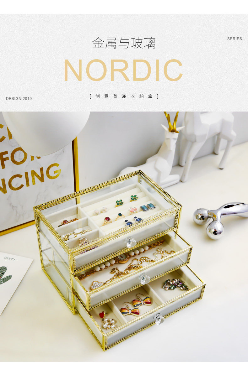 Стеклянная коробочка для хранения, ювелирное украшение, аксессуар, серьги, коробка для хранения, ожерелье для принцессы, вместительная и большая цепочка, простой и элегантный дизайн