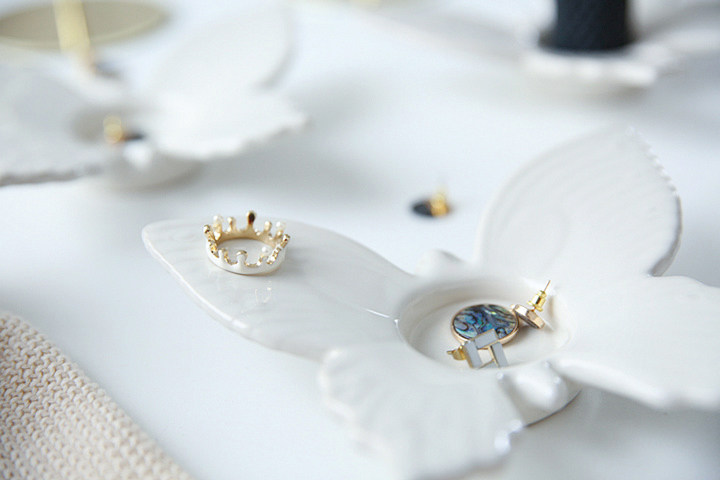 Серьги/маленькие ожерелья/кольца очень хороши, когда помещают на поверхность для мытья лица