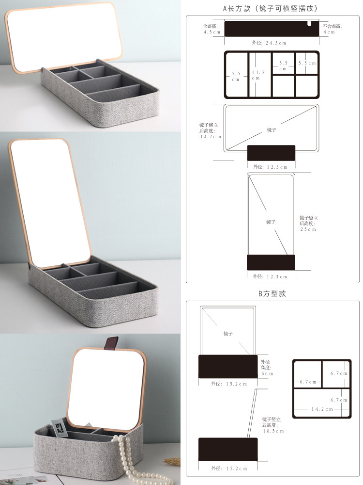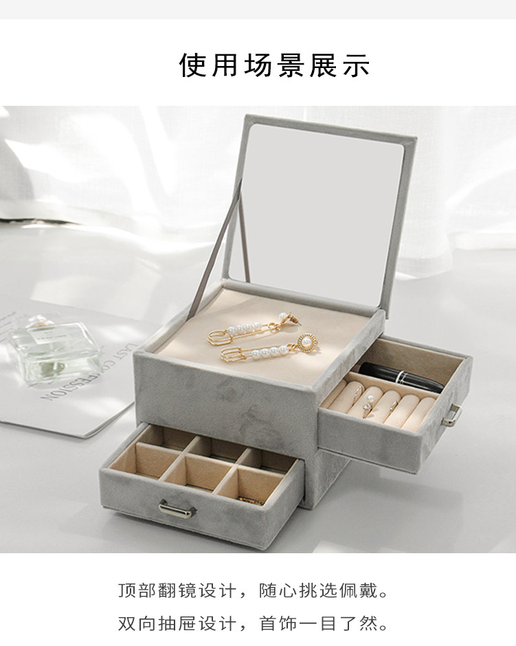 Зеркало, коробочка для хранения, серьги, кольцо, настольная коробка для хранения, часы, брендовый аксессуар, простой и элегантный дизайн