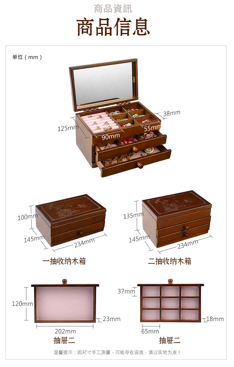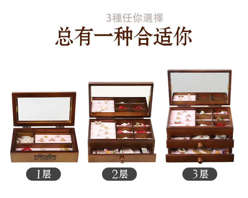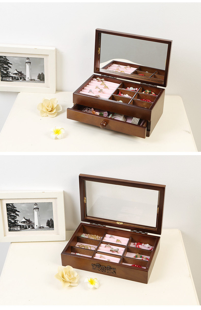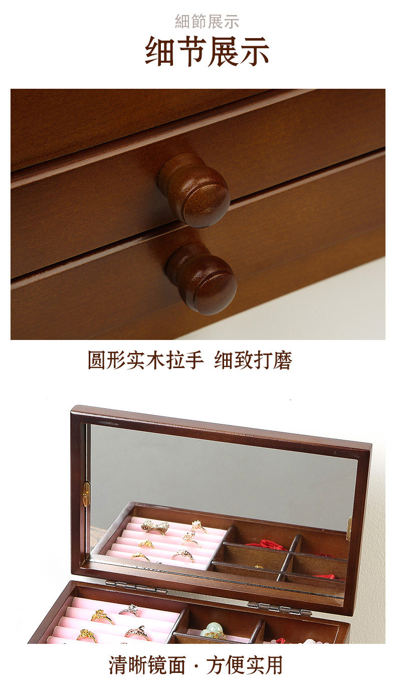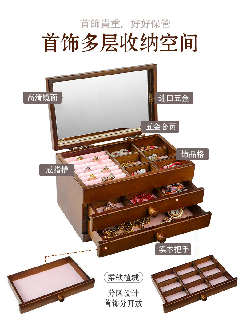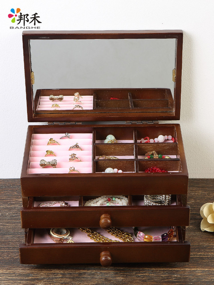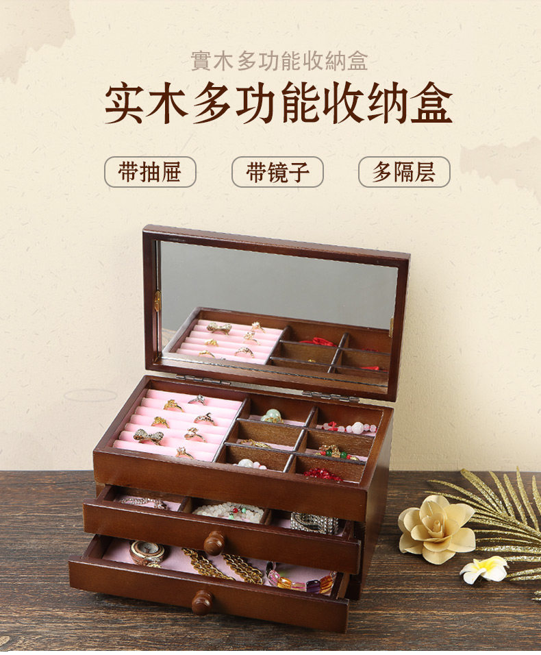 Косметическое ювелирное украшение из натурального дерева, зеркало, многослойная ретро коробка для хранения, настольный ящик для хранения