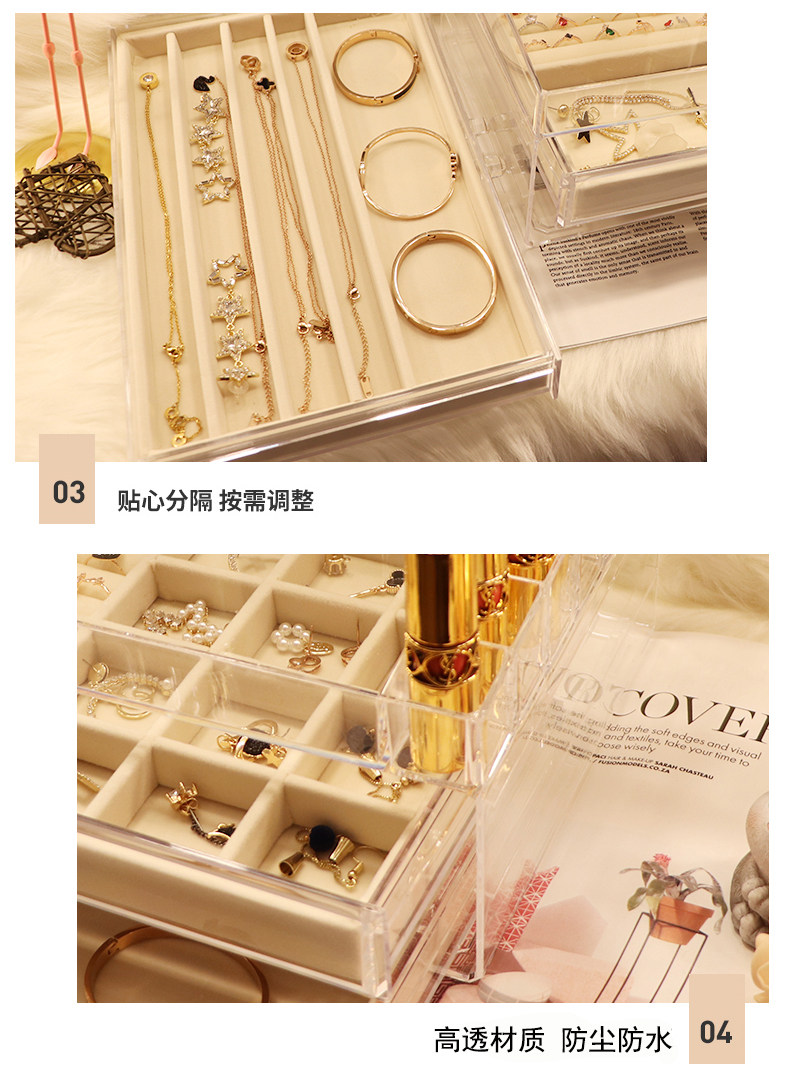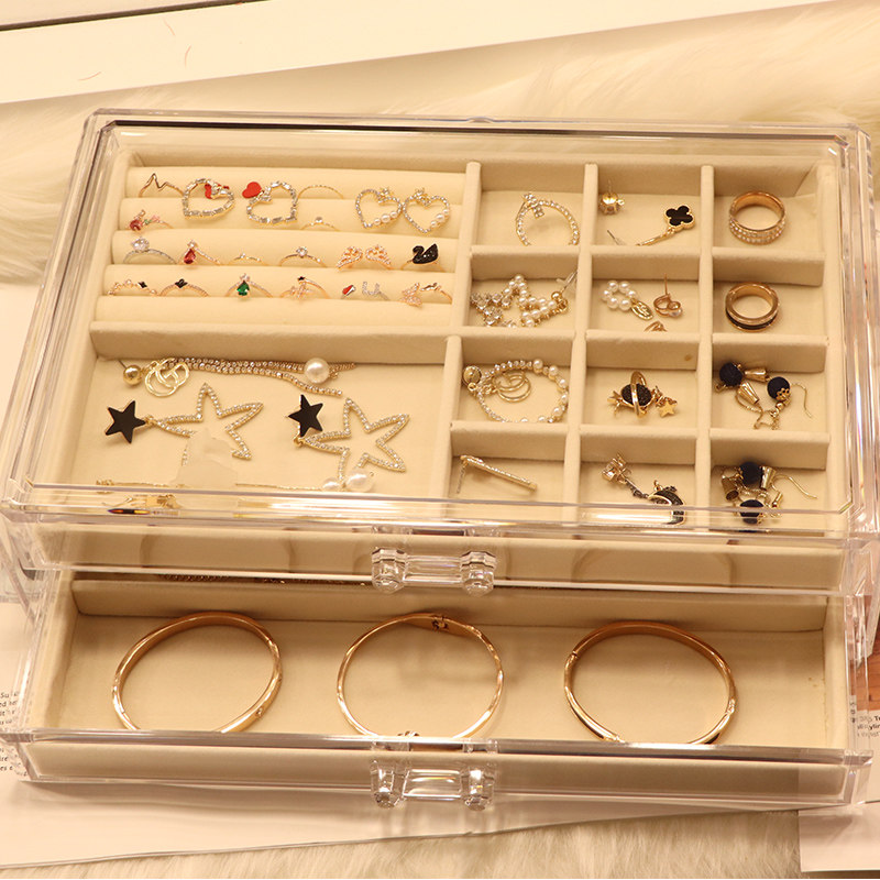 Вместительная и большая коробочка для хранения, коробка для хранения, прозрачный аксессуар, серьги, кольцо, часы для принцессы, популярно в интернете, простой и элегантный дизайн