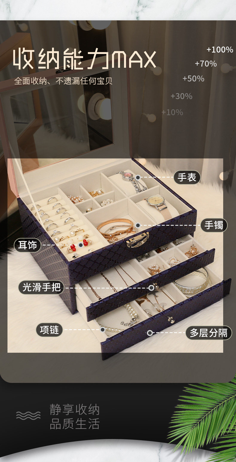 Маленькая коробочка для хранения, ожерелье, цепочка, ювелирное украшение, серьги, аксессуар, вместительная и большая брендовая коробка для хранения, легкий роскошный стиль