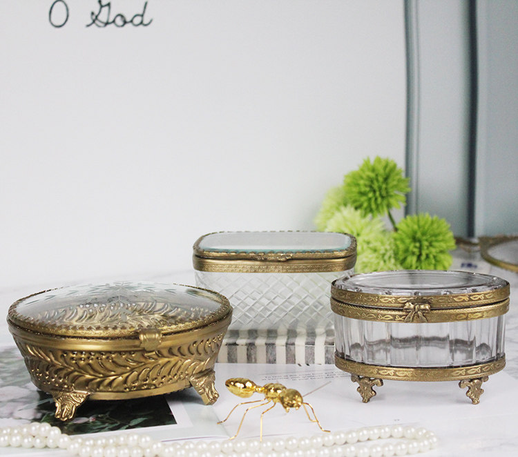 Импортное стеклянное латунное ретро ювелирное украшение, коробка для хранения, европейский стиль, Индия, легкий роскошный стиль