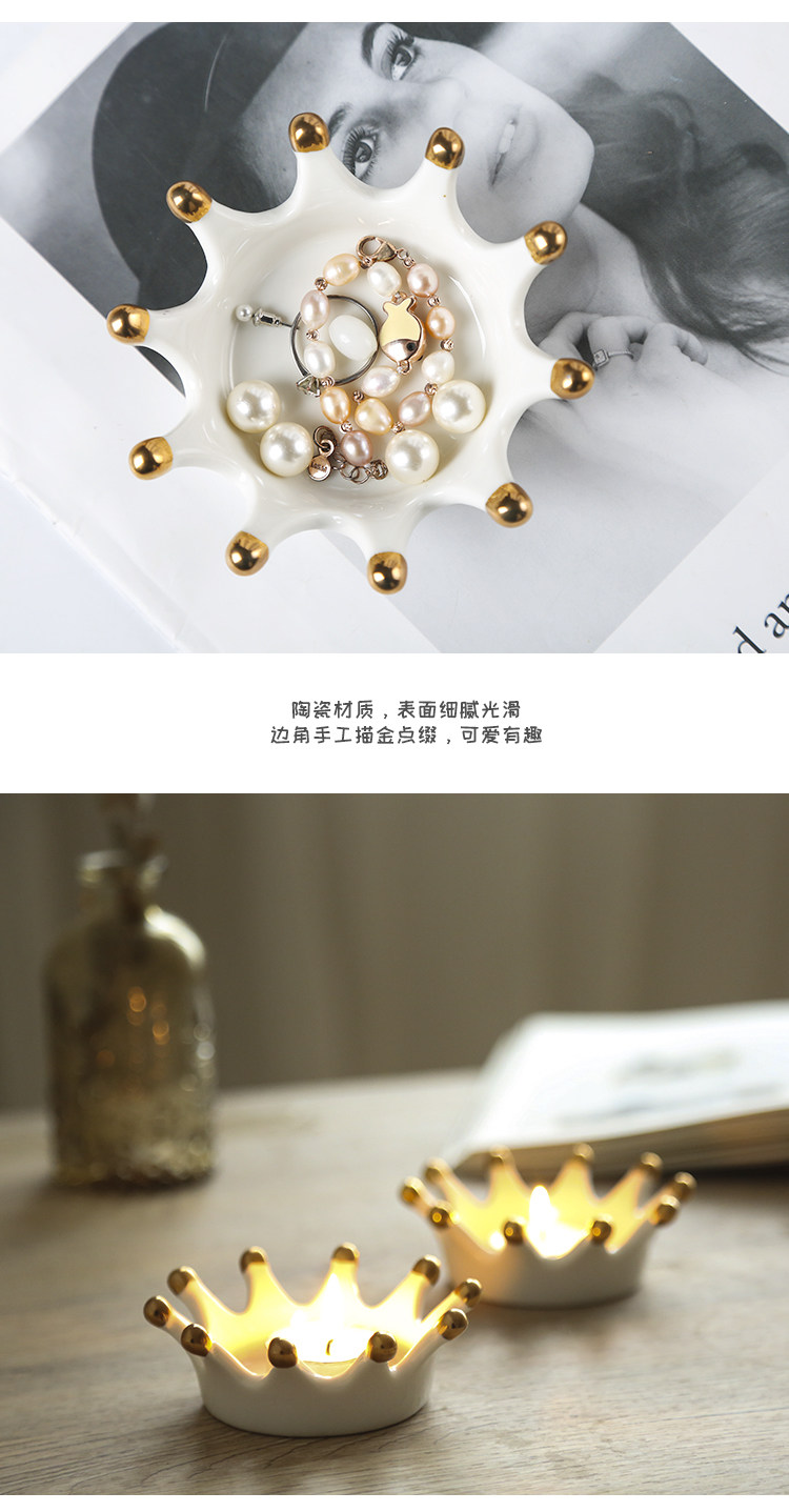 Простая мини -северная пластина скандинавская золотая корона -диск, демонстрируя Creative Candle Stand Cleam Candle Stuck