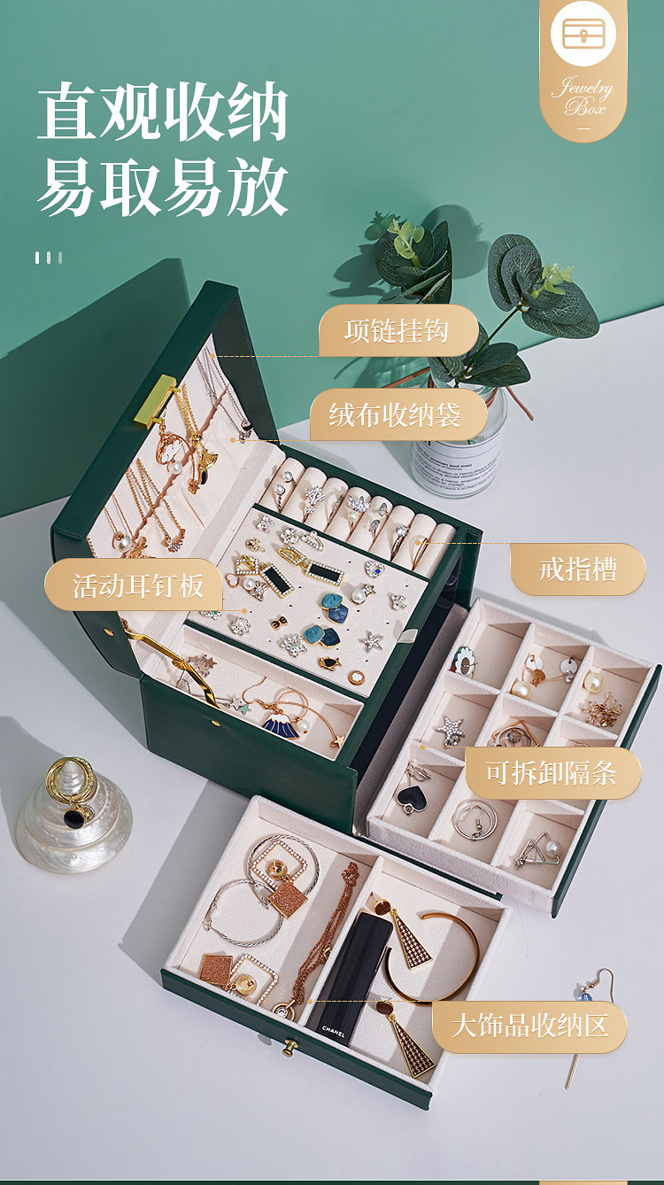 Коробочка для хранения, коробка для хранения, серьги, вместительное и большое ожерелье, цепочка, ювелирное украшение, аксессуар, система хранения, популярно в интернете