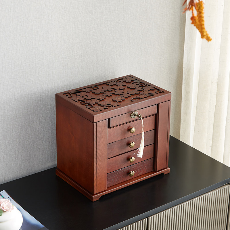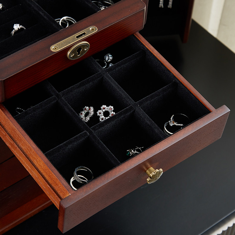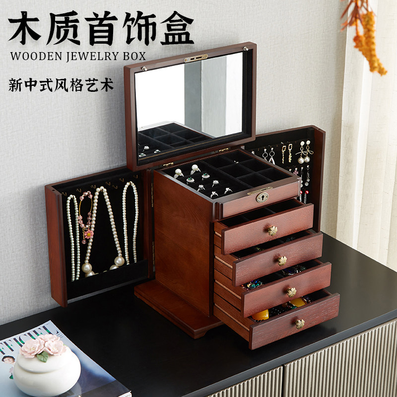 Деревянное ювелирное украшение, коробочка для хранения для принцессы, высококлассная ретро коробка для хранения, аксессуар, вместительная и большая подарочная коробка, подарок на день рождения