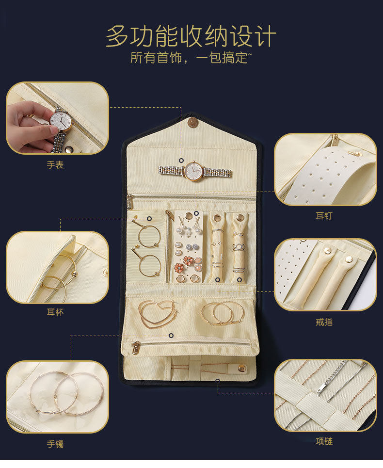 Высококлассная коробочка для хранения для путешествий, аксессуар, портативная сумка-органайзер, серьги, ожерелье, цепочка, часы, вместительная и большая сумка для хранения, легкий роскошный стиль