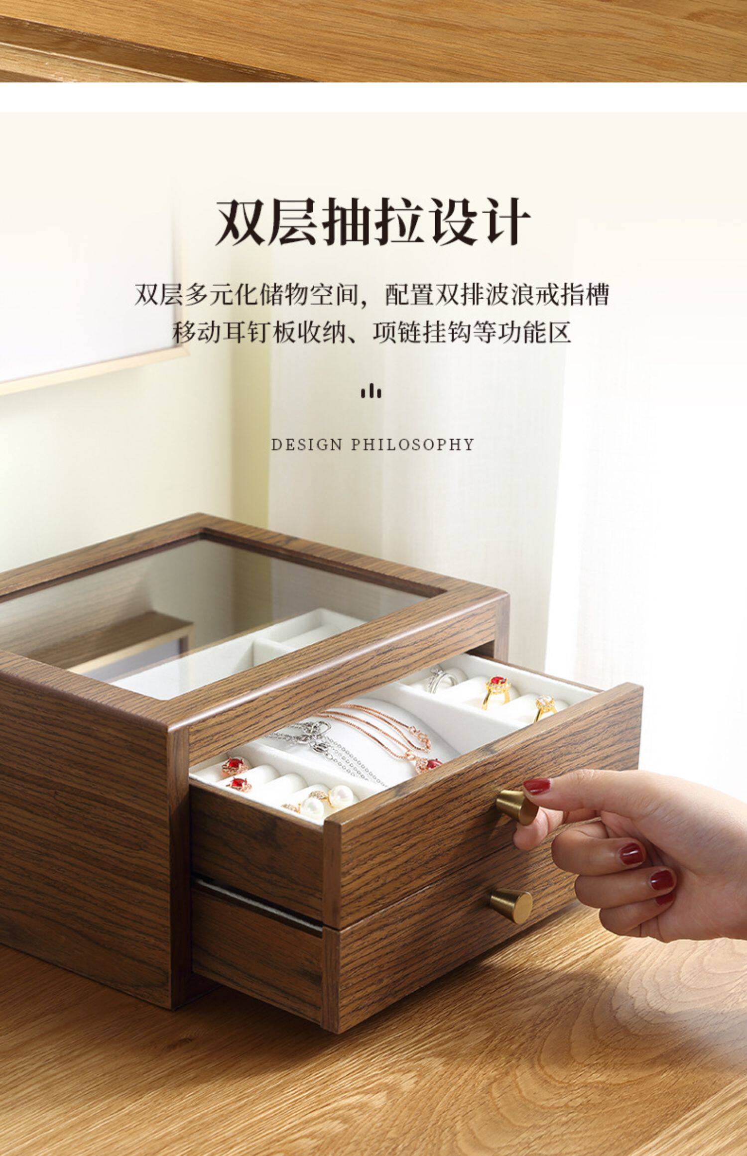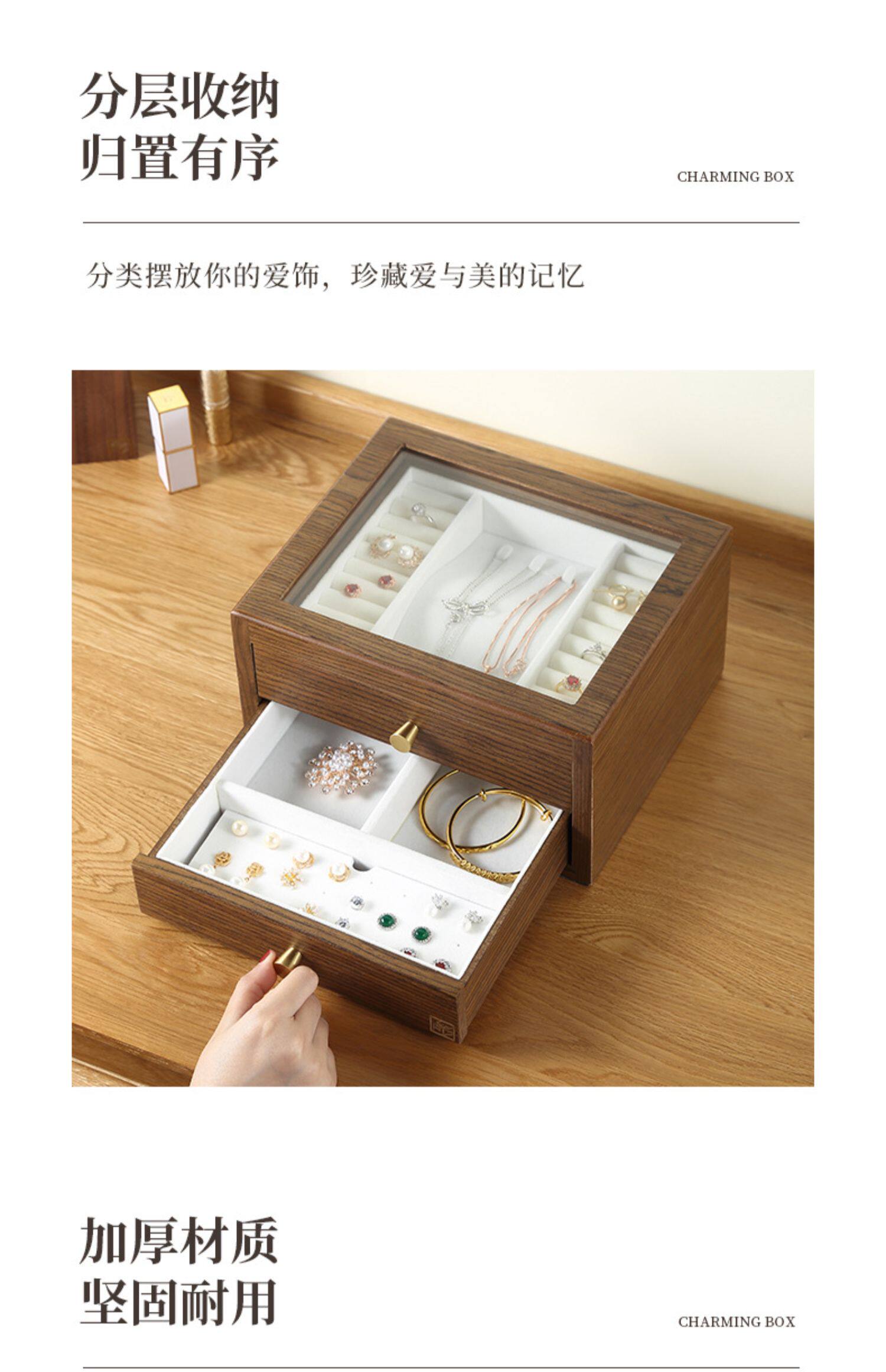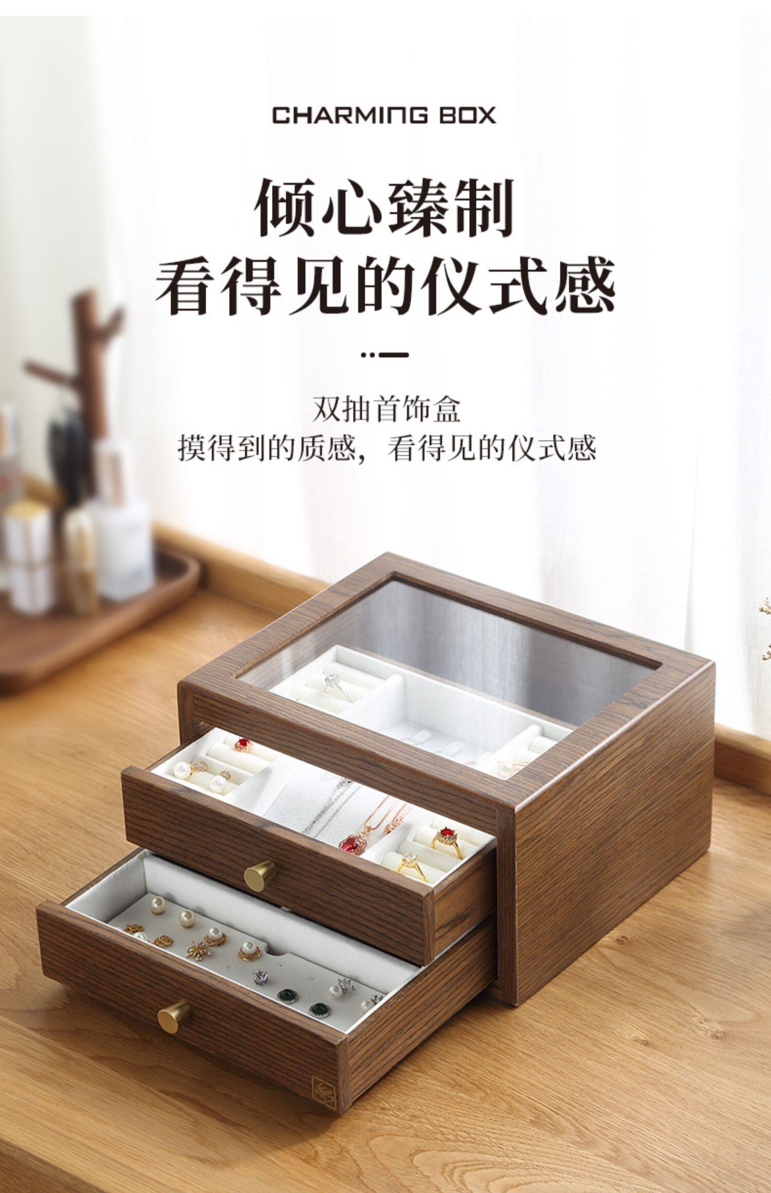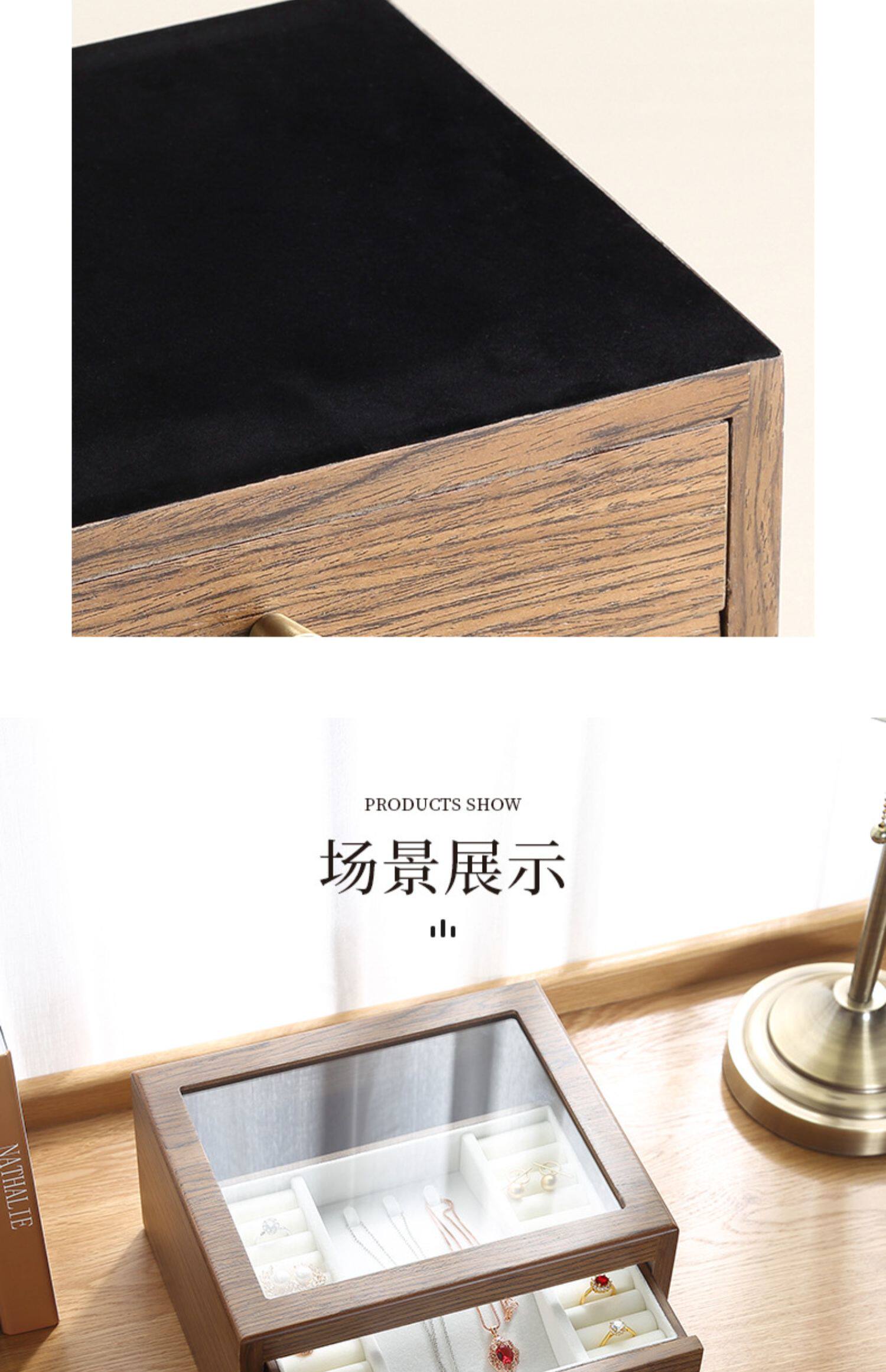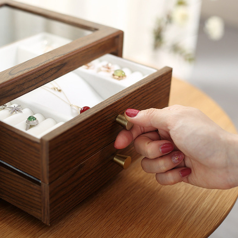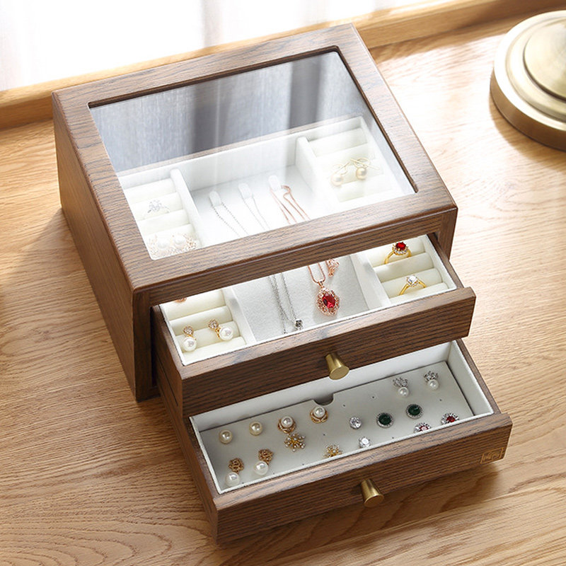 Коробочка для хранения, ретро ожерелье, высококлассное ювелирное украшение, аксессуар, деревянная прозрачная система хранения, китайский стиль, легкий роскошный стиль