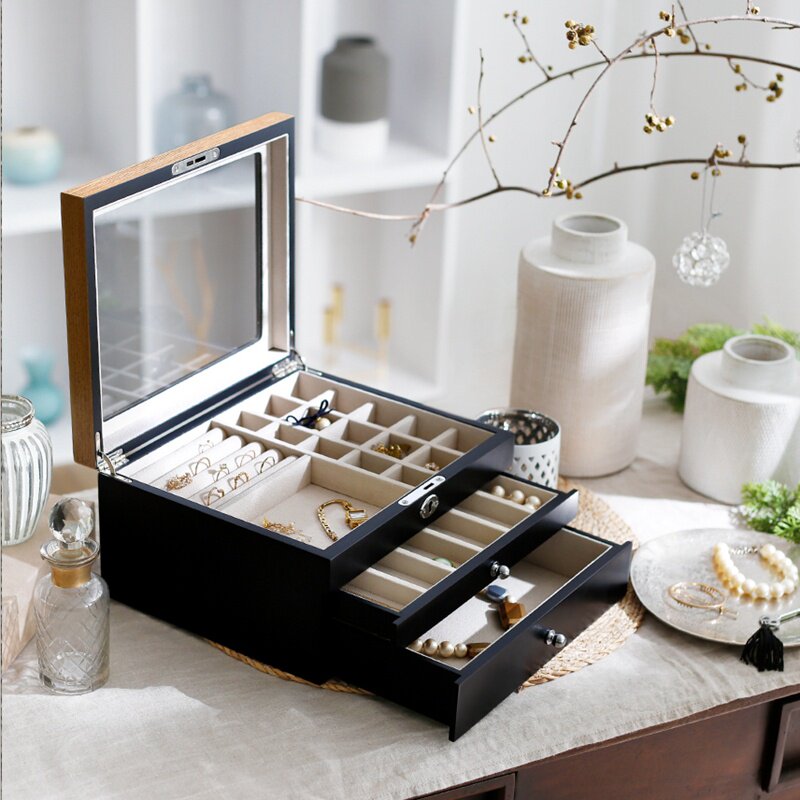 Японские серьги, ожерелье, коробка для хранения, аксессуар, вместительная и большая деревянная коробочка для хранения, ювелирное украшение, сундук с сокровищами