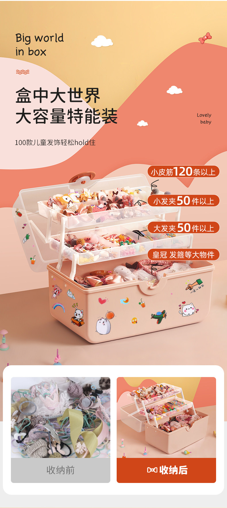 Детский аксессуар для волос, коробка для хранения, детская заколка для волос, шпильки для волос, милая резинка для волос, коробочка для хранения
