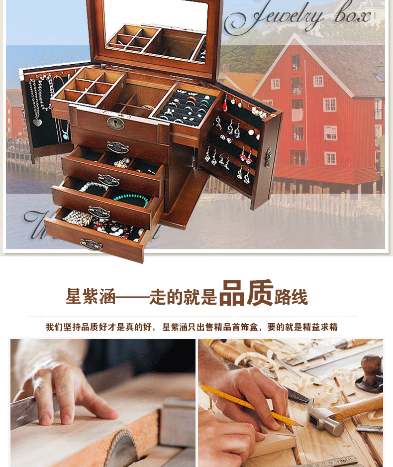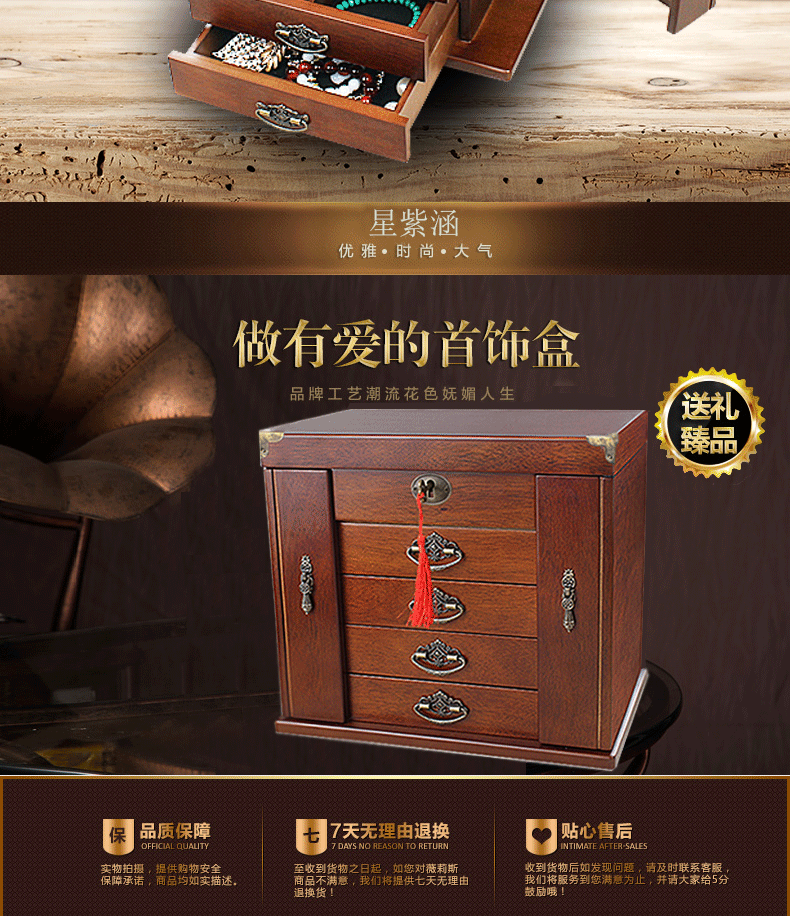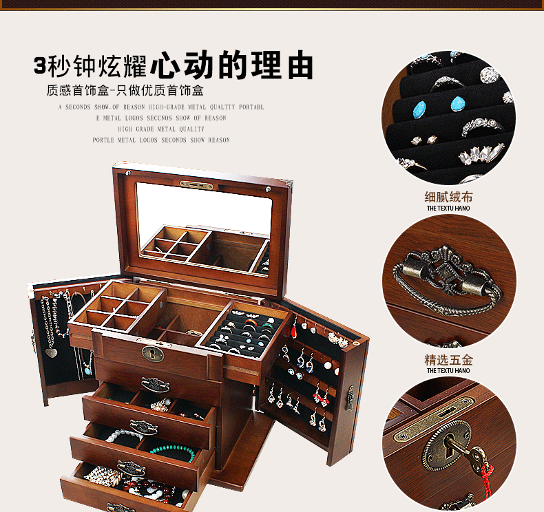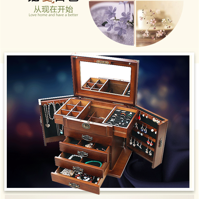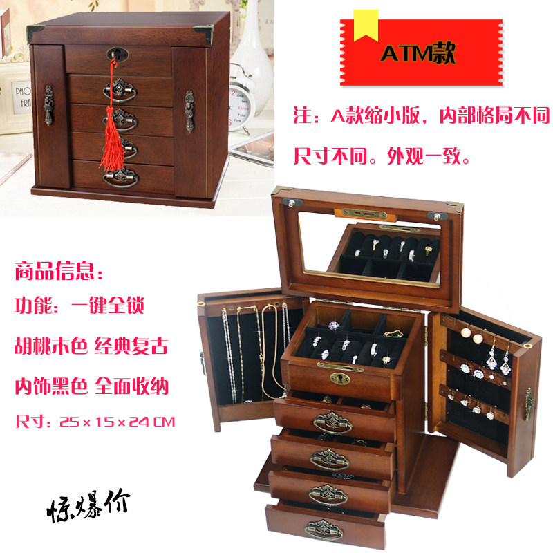 Коробочка для хранения, ретро коробка для хранения, деревянное вместительное и большое ювелирное украшение из натурального дерева, сундук с сокровищами
