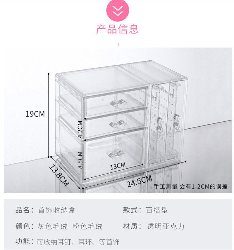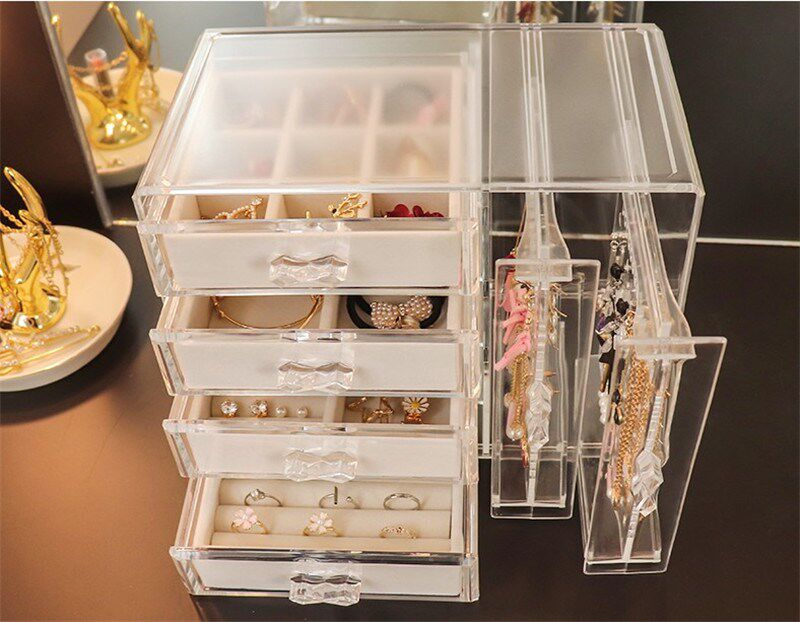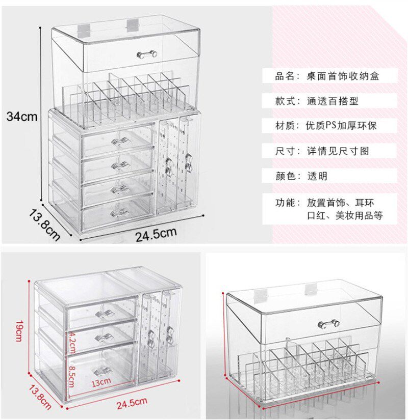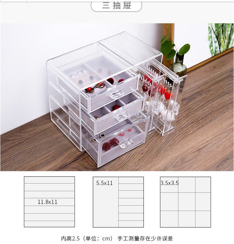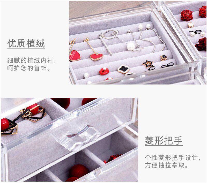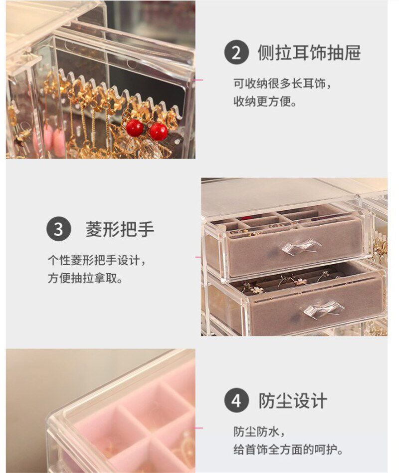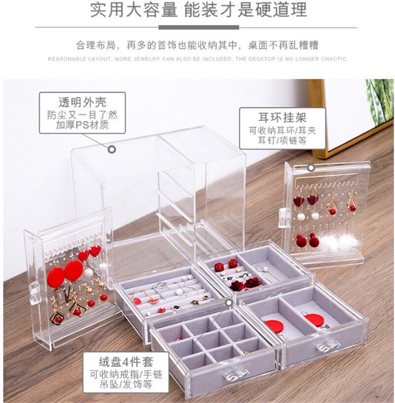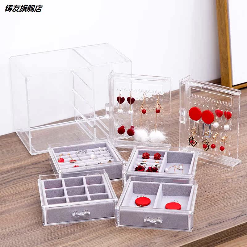 Прозрачные серьги, ожерелье, коробка для хранения, браслет, пудра, часы, аксессуар, Южная Корея