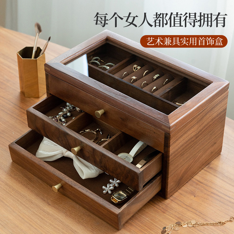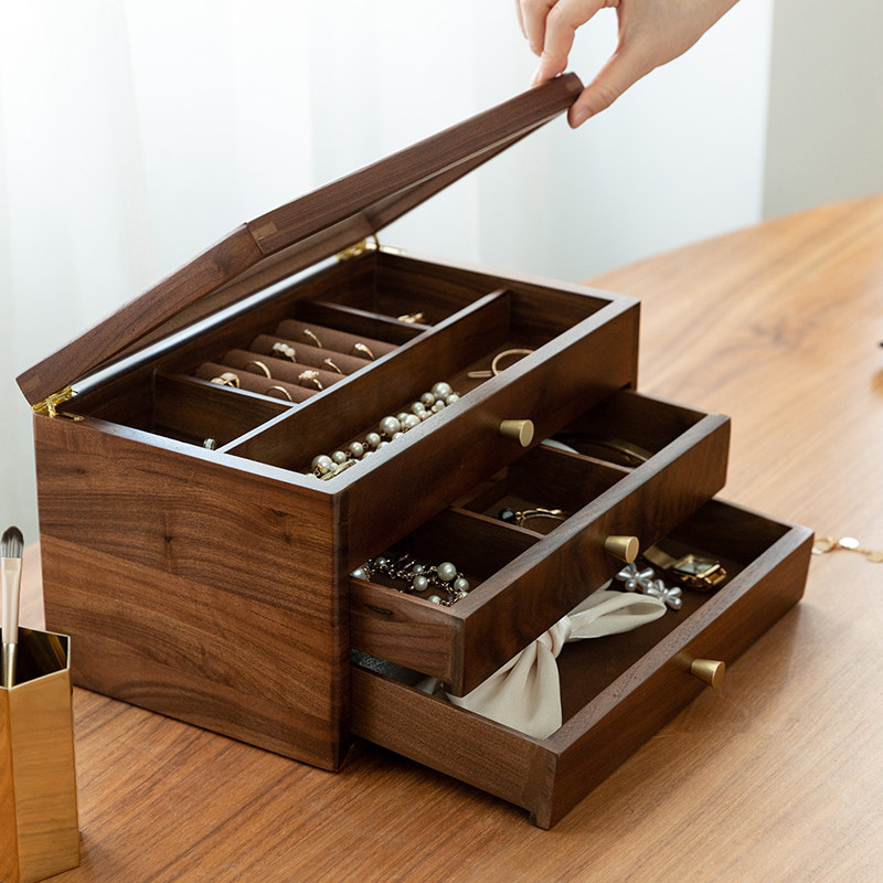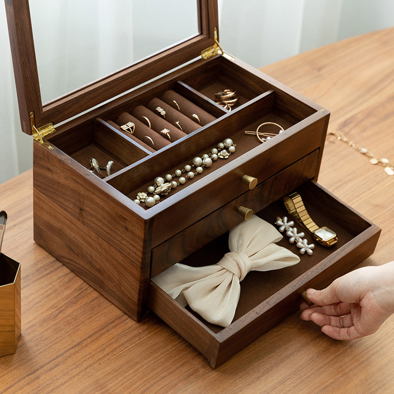 Коробочка для хранения, коробка для хранения из натурального дерева, серьги, ожерелье, аксессуар, деревянное ювелирное украшение, сундук с сокровищами