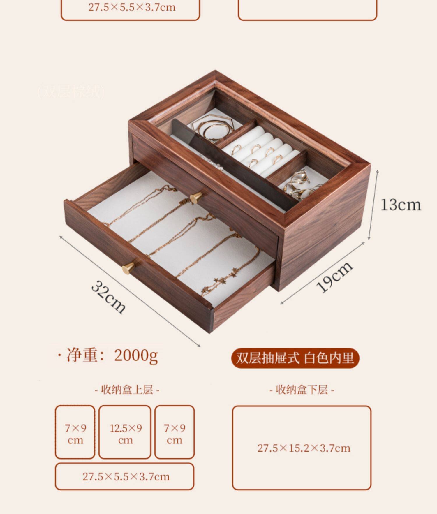 - FAS Classic Edition-North American Black Walnuts- [Double-Layer-32*19*13]-Белый бархат