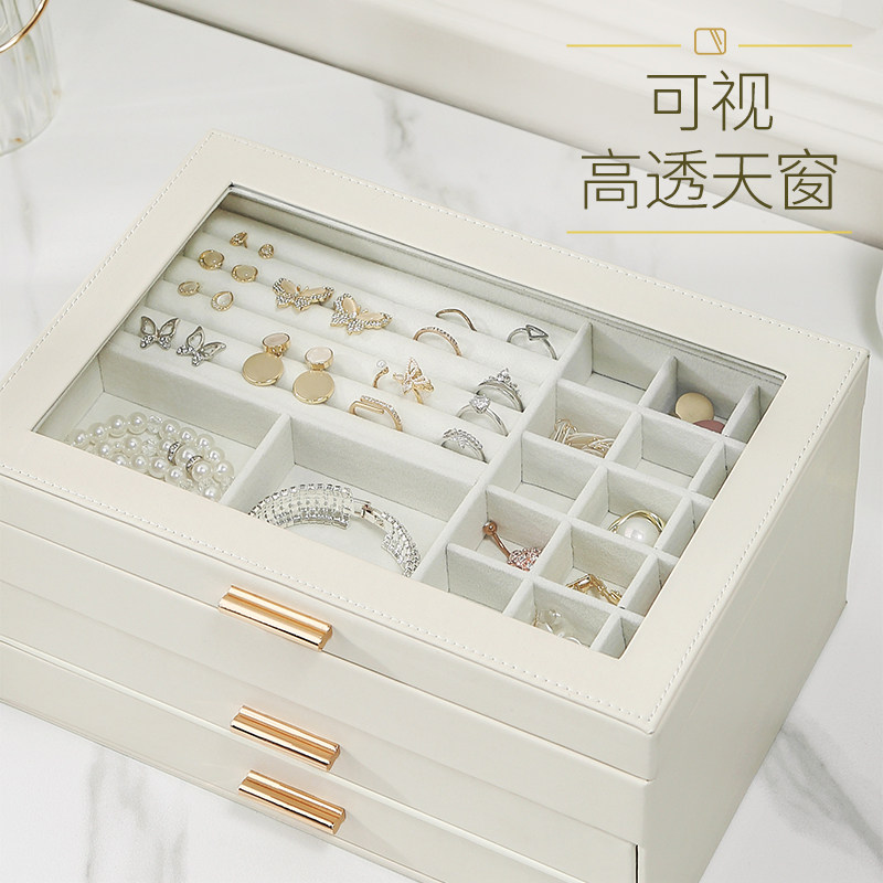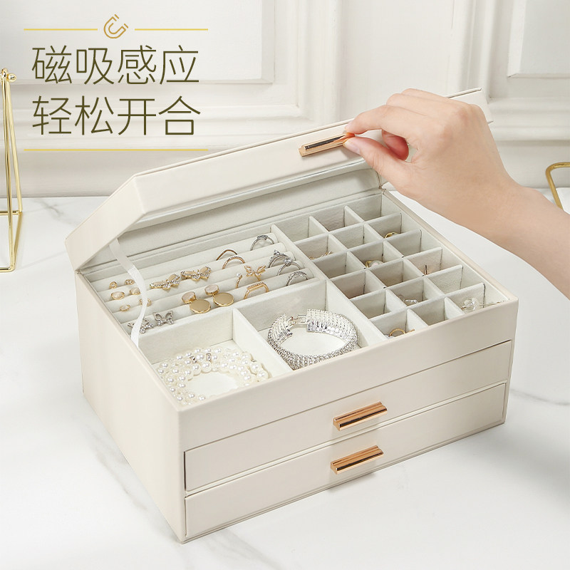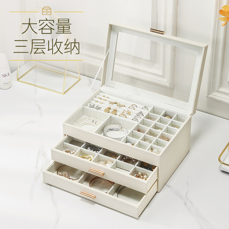 Вместительная и большая коробочка для хранения, аксессуар, высококлассная коробка для хранения, серьги, ожерелье, кольцо, легкий роскошный стиль
