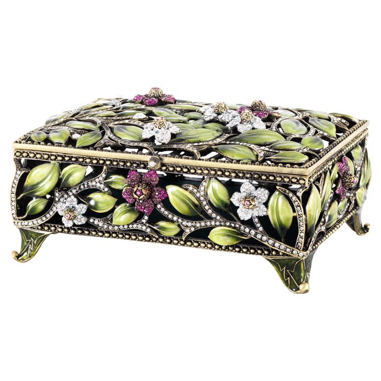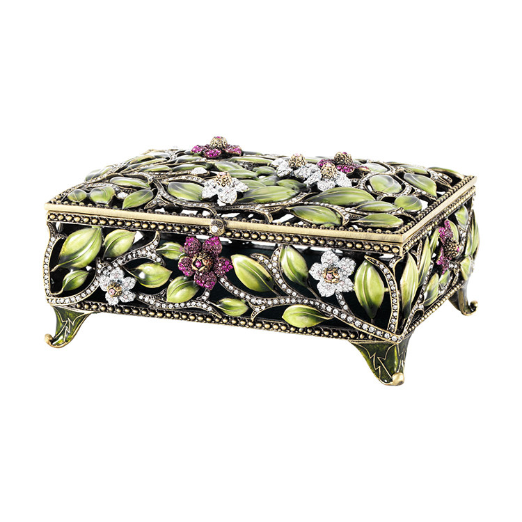 Оливия Ригель инкрустанный алмаз цветок зеленый лист декоративный прямоугольный классический заправка коробка ювелирных изделий