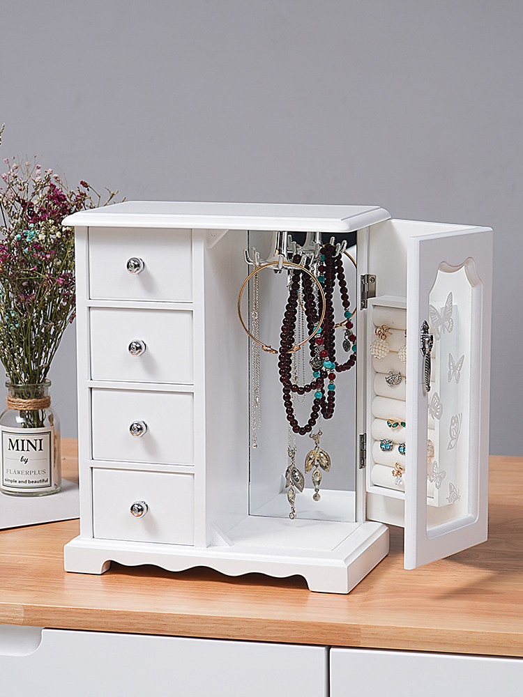 Белая деревянная коробочка для хранения, коробка для хранения, серьги, ожерелье, аксессуар для волос, кольцо, деревянная коробка из натурального дерева, японские и корейские