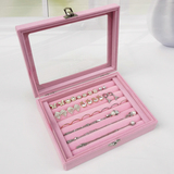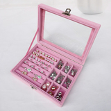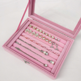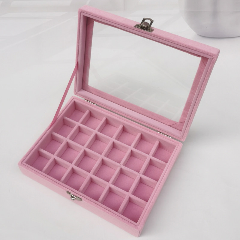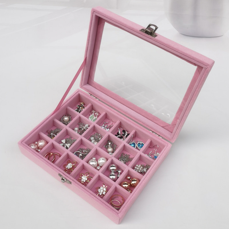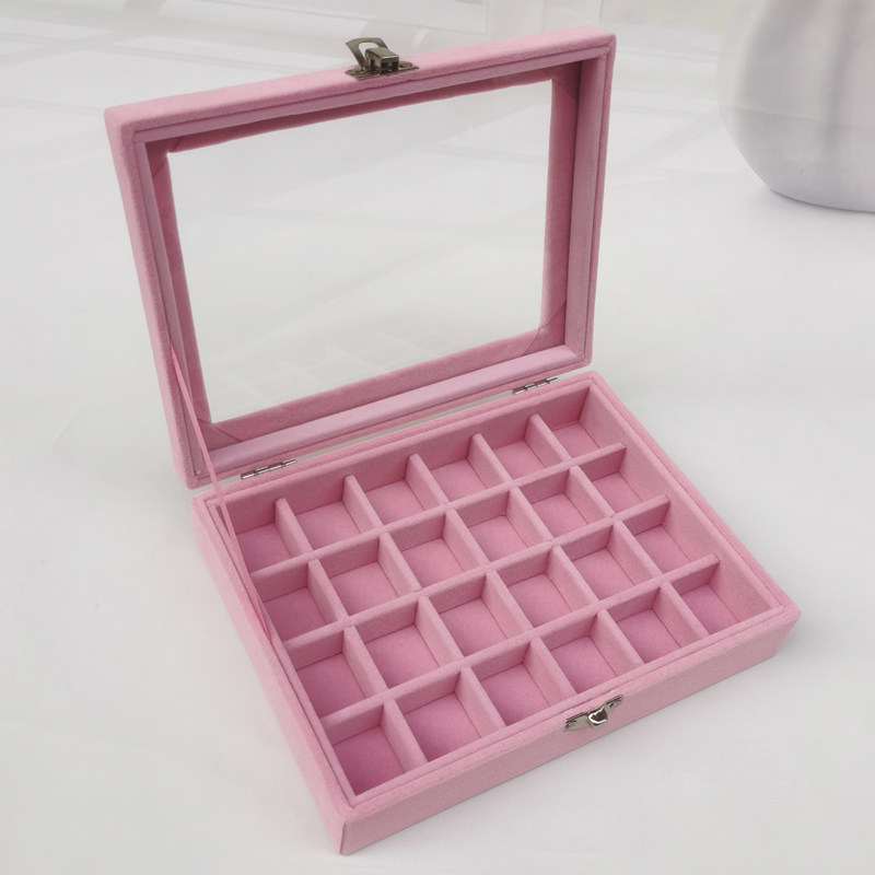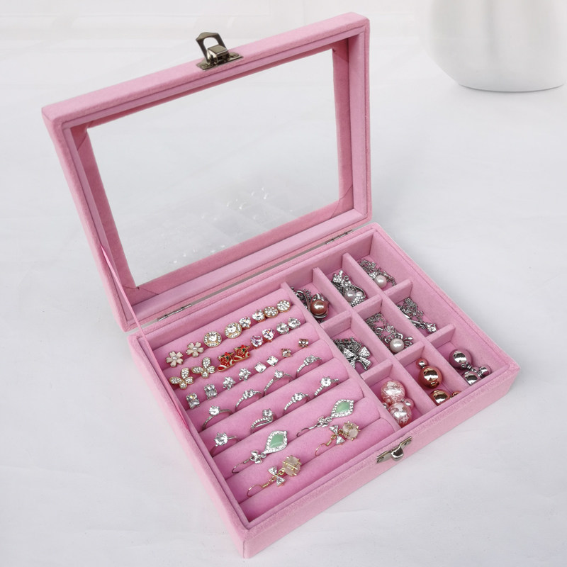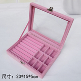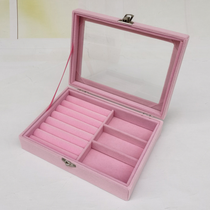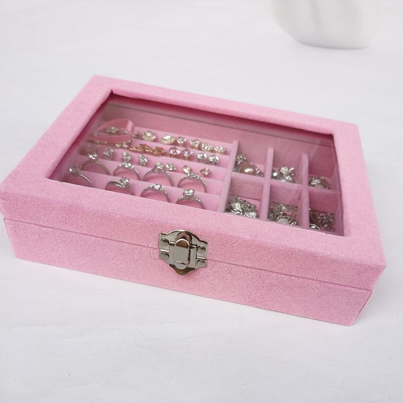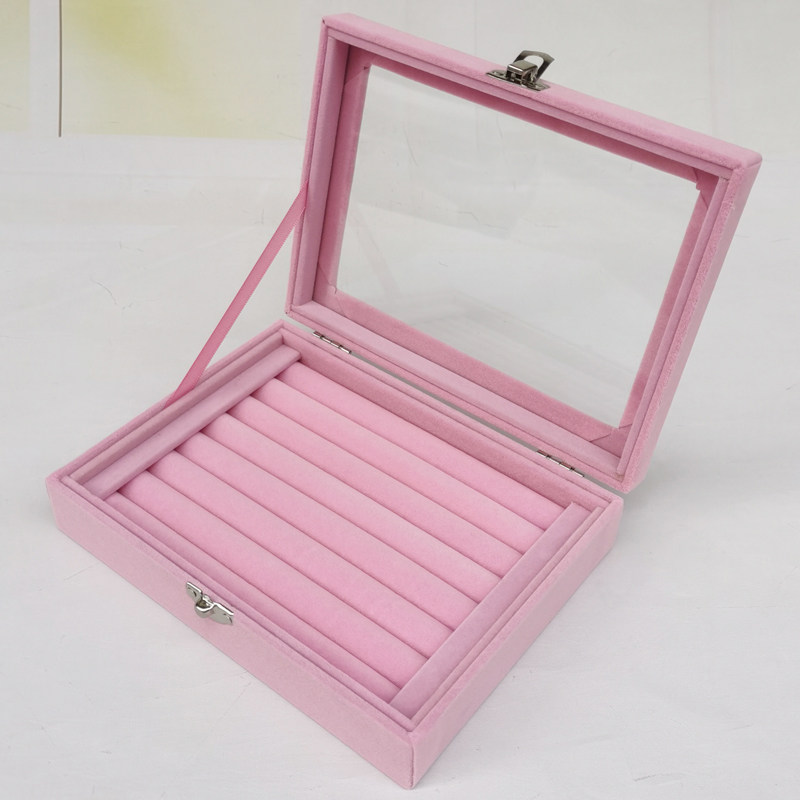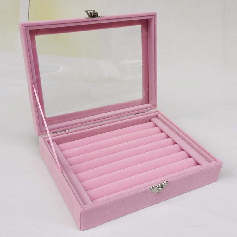 Розовая маленькая стеклянная коробочка для хранения, серьги, кольцо, ожерелье, ювелирное украшение, коробка для хранения